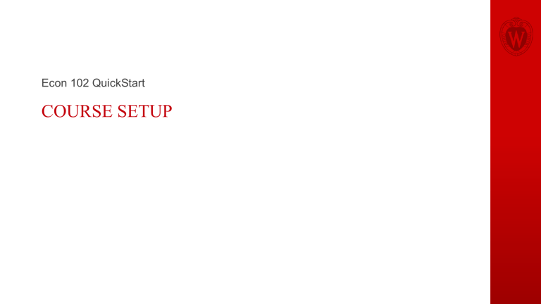 Econ 102 QuickStart COURSE SETUP A typical week Lectures Some data slides are posted in advance Breaks for “Ask your neighbor” activities Weekly Friday Discussions Graded weekly for Attendance, Preparation, Participation Drop three lowest weeks (absence, etc) Handwritten Prep Work must be done in advance Just show it to the TA at start of class to receive credit Most of each meeting devoted to groupwork Students organized into recurring color-themed groups Exams 4 75-minute online midterm exams all given during regular class-time Canvas will drop the lowest midterm score 120-minute online final exam 2:45pm Tuesday, Dec 19 Cumulative, about 50% testing new material Exam formats: Include multiple choice, dropdown, numeric, and free-response Honorlock-enabled to deter groupwork, online search Open-book, open-note Chapter Homework Administered through MyLab/Canvas Multiple choice, drop-down, and numeric Can each be re-submitted repeatedly until you get 100% Chapter Homework are due 11:59pm Central Time the day before the next exam Exam dates Chapter 5 and 6 Homework are due 11:59pm CT Monday, 9/25 • Online exam 1pm-2:15pm Tuesday, 9/26 Chapter 7 and 8 Homework are due 11:59pm CT Monday, 10/16 • Online exam 1pm-2:15pm Tuesday, 10/17 Chapter 9 Homework is due 11:59pm CT Monday, 10/30 • Online exam 1pm-2:15pm Tuesday, 10/31 Chapter 10 and 12 Homework are due 11:59pm CT Monday, 11/20 • Online exam 1pm-2:15pm Tuesday, 11/21 Chapters 13-15 Homework are due 11:59pm Monday, 12/18 • Online final exam 2:45-4:45pm Tuesday, 12/19 Econ 102 QuickStart ASSESSMENT Assessment: Exams 80% of the course grade 5 equally-weighted online exams 4 75-minute Midterm Exams offered during regular class-time Canvas drops the lowest midterm score 1 120-minute cumulative Final Exam on Dec 19, 2:45pm-4:45pm Exams are open-book, open-note, but closed to (other) internet use or contact with anyone else during the exam Exams are proctored with Honorlock and can be taken from anywhere Exams include multiple choice/drop-down, numerical, and free response questions Assessment: Discussion Attendance/Prep/Participation 10% of the course grade Discussion Prep assignments are posted weekly TA’s briefly check Prep work at start of Discussion Answers must be handwritten (on tablet or paper) Discussion Format: Groupwork within pods, think/pair/share, Q&A Canvas drops your lowest three weekly scores (including absences) Weekly grading rubric: 1 point for Attendance 1 point for Discussion Prep work 1 point for Active Participation throughout the meeting Assessment: Chapter Homework 10% of the course grade Administered online through the Canvas/MyLab interface Due 11:59pm Central Time the night before the next exam Questions can be attempted repeatedly up until the due-date in order to get a perfect homework score Econ 102 QuickStart STUDY TIPS Study Tips: Lecture Take handwritten notes (either on paper or a tablet) There is both theory and evidence that handwritten note-taking both improves retention and cuts down on study time Make handwritten notes on the slides posted ahead of class Slides showing economic data What the data show, how they are measured, how they tie into models from class Slides showing “Ask Your Neighbor” questions we do in lecture The right answer, notes both about why it is right and why other answers are not Ask and answer questions in class Flag things you aren’t sure about yet Study Tips: Readings I generally recommend that you read after lecture but before discussion Add to your lecture notes as you do the Chapter reading Check Canvas for any chapter handouts and update your notes again Do the “concept check” questions as you read the e-text Study Tip: Homework and Practice Problems I recommend you do the Chapter Homework after you do the reading Homework are for learning; they are not to be done at the last minute to test your knowledge before you take the exam. Keep a file or take notes on Homework Questions you missed the first time even if it is only the wording that confused you, as that wording may show up on the exam MyLab will allow you to re-take questions (or provide a similar question) Homework questions often include tutorials and always have the “ask your instructor” option in the question “hamburger” MyLab Study Plan updates to reflect your homework and exam progress/challenges—use the personalized study guide for more practice Study Tip: Learning by Doing Study for an econ class like you would study for a math class Do the practice problems in MyLab Study Plan and practice chapter tests. Treat the many old exams on Canvas as a practice problem database. Treat practice (and exam) multiple choice questions like short answer questions—know the answer and THEN look for it in the list of choices. Create your own practice problems—reverse an example from class (e.g. up instead of down), try to think of a real-world example question, or combine two questions into something you haven’t seen before; if you aren’t sure of the answer to your created question, ask your study group, TA, discussion section “pod”, or course instructor Write out explanations for your answers. Read them aloud. Do they make sense? Do you understand deeply enough to explain it to someone else? Study Tip: Act like a person Talk to me and/or the TA’s during our office hours. Ask questions both in class and during discussion Email me if you have more questions Go to Econ 102 tutoring sessions while doing coursework, even if you don’t think you need help, so that you can meet other people in the class Work with other students in discussion, tutoring sessions, and elsewhere Practice being the TA—make up some exam questions, including both “essential” things and trickier concepts, to practice with your classmates Self-explain: Talk to yourself! People do that! If it doesn’t make sense to you when you say it out loud, it probably isn’t right. Prepare for the whole test like it 