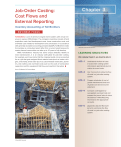 Job-Order Costing: Cost Flows and External Reporting Chapter 3 Inventory Accounting at Toll Brothers BUSINESS FOCUS Toll Brothers is one of America’s largest home builders with annual revenues in excess of $5.8 billion. The company’s inventory consists of land acquisition costs, land development costs, home construction costs, and overhead costs related to development and construction. In accordance with generally accepted accounting principles (GAAP), Toll Brothers treats its inventory as a long-lived asset rather than a current asset because its master planned communities can take up to 10 years to fully develop. While Toll Brothers’ industry has some unique attributes relative to most manufacturers, it is an industry well-suited for job-order costing. For example, each new home that the company builds can be accounted for as a job that gets assigned direct material costs (such as lumber, shingles, and bricks), direct labor (such as subcontracted electricians, plumbers, and roofers), and overhead costs (such as the costs of construction supervisors and the equipment that they use to perform their jobs). ■ ©Beautiful landscape/Shutterstock LEARNING OBJECTIVES After studying Chapter 3, you should be able to: LO3–1 Understand the flow of costs in a job-order costing system and prepare appropriate journal entries to record costs. LO3–2 Use T-accounts to show the flow of costs in a job-order costing system. LO3–3 Prepare schedules of cost of goods manufactured and cost of goods sold and an income statement. LO3–4 Compute underapplied or overapplied overhead cost and prepare the journal entry to close the balance in Manufacturing Overhead to the appropriate accounts. LO3–5 (Appendix 3A) Use Microsoft Excel to summarize the flow of costs in a job-order costing system. Source: Toll Brothers 2017 Annual Report ©Pixtal/AGE Fotostock 104 Chapter 3 C hapter 2 discussed how companies use job-order costing to assign manufacturing costs to individual jobs. This chapter describes how companies use job-order costing to prepare a balance sheet and an income statement for external reporting purposes. Exhibit 3–1 summarizes seven important vocabulary terms that were introduced in the previous chapter. Please take a moment to review these terms, each of which is included in the Glossary at the end of this chapter, because it will help you understand the forthcoming learning objectives. EXHIBIT 3–1 Summary of lmportant Vocabulary Terms Vocabulary Term Definition Job-order costing A costing system used in situations where many different products, jobs, or services are produced each period. Absorption costing A costing method that includes all manufacturing costs—direct materials, direct labor, and both variable and fixed manufacturing overhead—in the cost of a product. Allocation base A measure of activity such as direct labor-hours or machine-hours that is used to assign costs to cost objects. Predetermined overhead rate A rate used to charge manufacturing overhead cost to jobs that is established in advance for each period. It is computed using the following equation: Estimated total manufacturing overhead cost Predetermined overhead rate = ____________________________________ Estimated total amount of the allocation base Overhead application The process of assigning overhead costs to specific jobs using the following formula: Overhead applied Predetermined Amount of the allocation to rate × base a particular job = overhead incurred by the job Normal costing A costing system in which overhead costs are applied to a job by multiplying a predetermined overhead rate by the actual amount of the allocation base incurred by the job. Job cost sheet A form that records the direct materials, direct labor, and manufacturing overhead cost charged to a job. Job-Order Costing—The Flow of Costs LO3–1 Understand the flow of costs in a job-order costing system and prepare appropriate journal entries to record costs. In Chapter 1, we used Exhibit 1–2 to illustrate the cost flows and classifications in a manufacturing company. Now we are going to use a similar version of that exhibit, as shown in Exhibit 3–2, to introduce the cost flows and classifications in a manufacturing company that uses job-order costing. Exhibit 3–2 shows that in job-order costing a company’s product costs flow through three inventory accounts on the balance sheet and then on to cost of goods sold in the income statement. More specifically, raw materials purchases are recorded in the Raw Materials inventory account. Raw materials include any materials that go into the final product. When raw materials are used in production as direct materials, their costs are transferred to Work in Process inventory.1 Work in process consists of units of product that are only partially complete and will require further work before they are ready for sale to the customer. To transform direct materials into completed jobs, direct labor cost is added to Work in Process and manufacturing overhead cost is applied to Work in Process by multiplying the predetermined overhead rate by the actual quantity of the allocation base consumed by each job.2 When jobs are completed, their costs are 1 Indirect materials are accounted for as part of manufacturing overhead. For simplicity, Exhibit 3–2 assumes that Cost of Goods Sold does not need to be adjusted as discussed later in the chapter. 2 105 Job-Order Costing: Cost Flows and External Reporting EXHIBIT 3–2 Cost Flows and Classifications in a Manufacturing Company That Uses Job-Order Costing Costs Balance Sheet Product costs Raw materials purchases Raw Materials inventory Direct materials used in production Direct labor Work in Process inventory Goods completed (Cost of Goods Manufactured) Manufacturing overhead Income Statement Cost of Goods Sold Finished Goods inventory Period costs Goods sold Selling and administrative transferred from Work in Process to Finished Goods inventory. F