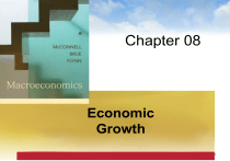 Chapter 08 Economic Growth Principles of Macroeconomics - Chapter 07Copyright © 2006 Pearson Addison-Wesley. All rights reserved. 9-1 A supply factor in economic growth would be: A. A fall in the efficient use of resources B. A rise in the rate of resource depletion C. An increase in the quantity of labor D. An increase in consumption spending Answer: Principles of Macroeconomics - Chapter 07Copyright © 2006 Pearson Addison-Wesley. All rights reserved. 9-2 Which is not a supply factor in economic growth? A. An efficient allocation of resources B. Natural resources C. The quantity and quality of labor D. Technological knowledge Answer: Principles of Macroeconomics - Chapter 07Copyright © 2006 Pearson Addison-Wesley. All rights reserved. 9-3 Which is a demand factor in economic growth? A. More human and natural resources B. Technological progress and innovation C. An increase in the economy's stock of capital goods D. An increase in total spending in the economy Answer: Principles of Macroeconomics - Chapter 07Copyright © 2006 Pearson Addison-Wesley. All rights reserved. 9-4 Assume a nation's current production possibilities are represented by the curve AB in the above diagram. Positive economic growth would best be indicated by a: A. Shift in the curve from AB to CD B. Shift in the curve from AB to EF C. Movement from point 1 to point 2 D. Movement from point 3 to point 4 Answer: Principles of Macroeconomics - Chapter 07Copyright © 2006 Pearson Addison-Wesley. All rights reserved. 9-5 Refer to the above diagram. If the production possibilities curve for an economy is at AB but the economy is operating at point 4, the reasons are most likely to be because of: A. Supply and environmental factors B. Demand and efficiency factors C. Labor inputs and labor productivity D. Technological progress Answer: Principles of Macroeconomics - Chapter 07Copyright © 2006 Pearson Addison-Wesley. All rights reserved. 9-6 Refer to the above diagram. If there is a movement away from the full employment of resources in an economy with production possibilities curve AB, this can be shown by: A shift of the curve from AB to CD B. A movement from point 3 to point 1 C. A movement from point 2 to point 4 D. Point 5 in the diagram Answer: Principles of Macroeconomics - Chapter 07Copyright © 2006 Pearson Addison-Wesley. All rights reserved. 9-7 Refer to the above diagram. Negative economic growth can be shown by a shift of: A. EF to AB B. EF to CD C. AB to CD D. CD to AB Answer: Principles of Macroeconomics - Chapter 07Copyright © 2006 Pearson Addison-Wesley. All rights reserved. 9-8 Refer to the above diagram. A shift in the production possibilities curve from AB to CD is most likely due to: A. The use of the economy's resources in an efficient way B. An increase in the spending of business and consumers C. An increase in government purchase of the economy's output D. An increase in the quantity and quality of labor resources Answer: Principles of Macroeconomics - Chapter 07Copyright © 2006 Pearson Addison-Wesley. All rights reserved. 9-9 Real GDP or total output in any year is equal to: A. Labor inputs divided by resource outputs B. Labor productivity multiplied by real output C. Worker-hours multiplied by labor productivity D. Worker-hours divided by labor productivity Answer: Principles of Macroeconomics - Chapter 07Copyright © 2006 Pearson Addison-Wesley. All rights reserved. 9-10 If total output in an economy is $600,000 and the total work-hours in the economy are 40,000, labor productivity is: A. $7 B. $9 C. $13 D. $15 Answer: Principles of Macroeconomics - Chapter 07Copyright © 2006 Pearson Addison-Wesley. All rights reserved. 9-11 Which will NOT increase the average productivity of labor? A. An increase in the stock of real capital B. Improvements in the education and health of the labor force C. Technological progress as reflected in more efficient capital goods D. An increase in the size of the labor force Answer: Principles of Macroeconomics - Chapter 07Copyright © 2006 Pearson Addison-Wesley. All rights reserved. 9-12 The basic determinants of labor inputs (total hours of work) include: A. Economies of scale and technological advance B. Education and training, and allocative efficiency C. The size of the labor force and average hours of work D. The quantity and quality of capital and human resources Answer: Principles of Macroeconomics - Chapter 07Copyright © 2006 Pearson Addison-Wesley. All rights reserved. 9-13 Negative economic growth can be shown as a: A. Rightward shift of the production possibilities curve B. Leftward shift of the production possibilities curve C. Movement from a point on the production possibilities curve to one outside of it D. Movement from one point on the production possibilities curve to another point on the curve Answer: Principles of Macroeconomics - Chapter 07Copyright © 2006 Pearson Addison-Wesley. All rights reserved. 9-14 Assume that an economy has 1500 workers, each working 2000 hours per year. If the average real output per worker-hour is $20, then total output or real GDP will be: A. $3 million B. $30 million C. $45 million D. $60 million Answer: Principles of Macroeconomics - Chapter 07Copyright © 2006 Pearson Addison-Wesley. All rights reserved. 9-15 The table below shows the quantity of labor (measured in hours) and the productivity of labor (measured in real GDP per hour) in a hypothetical economy in three different years. • Year Quantity of Labor Productivity of Labor 1 2.000 200 2 2.000 210 3 2.200 210 Refer to the above table. Between Year 2 and Year 3, the productivity of labor: A. Increased by 5 percent and the quantity of labor increased by 10 percent B. Increased by 2 percent and the quantity of labor increased by 10 percent C. Remained the same, but the quantity of labor increased by 5 percent D. Remained the same, but the quantity of labor increased by 10 percent Answer: Principles of Macroeconomics - Chapter 07Copyright © 2006 Pearson 