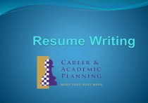 Program Objectives Provide brief information on the basics of writing a resume. Cover content, format, and appearance. Address frequently asked questions. Discuss additional resources. What is a Resume? An advertisement of who you are: • Competencies • Accomplishments • Future capabilities Your chief marketing tool to introduce yourself to your audience! Applicant’s perspective: • To help you get interviews • Interviews lead to jobs, graduate admission, internships, leadership positions, or scholarships Reviewer’s perspective: • Screening- what this person can do for me • Resumes should communicate value Do your research! Know yourself… Experiences Skills Strengths Interests Future goals Know your audience… Mission or vision What they’re looking for in an applicant In other words: target your resume! Examples of Targeting Technical fields Include related information like computer skills, use of lab equipment, technical or scientific techniques, etc. Human services Include experiences relating to interpersonal and communication skills or volunteer experiences Creative or promotion related fields Resume may be more creative in appearance A GOOD RESUME = CONTENT The type of information you choose to put on your resume. FORMAT The way you arrange this information. APPEARANCE How this information is presented aesthetically. CONTENT •Qualities, skills and experiences you want your audience to know about. •Relevant experiences can be both paid and unpaid. •Your resume can be as individualized as you arecreate custom categories and headings to suit your needs. Content: Overview of ideas to include (more detail to follow) Name, Contact Info Objective Education Courses and Research Papers and Projects Technical Foreign Language Lab, Communication Other Study Abroad and Travel Honors and Awards Certification or Training Experience Work (paid or unpaid) Internships, Externships Clubs/Organizations Volunteer or Service Skills References (separate page) Name & Contact Information Provide one email address & one phone number One or two addresses are both ok Ann Smith JMU Box 8234, Harrisonburg, VA 22807, 721-566-9003 smithaf@dukes.jmu.edu Ann Smith Current Address: JMU Box 8234 Harrisonburg, VA 22807 smithaf@dukes.jmu.edu 721-566-9003 Permanent Address: 930 Covington Drive Dayton, OH 25612 Objective Objective is like the thesis of your resume. “To obtain a position in the import/export industry that will use my knowledge of business as well as language, leadership and communication skills”. Focus on how you would benefit your audience. Avoid phrases like “looking to build my skills and advance my body of knowledge.” Be concise and direct- but not vague. Avoid phrases like “seeking a challenging position with potential for growth and advancement.” Target your objective to each audience you’re applying to. Education JAMES MADISON UNIVERSITY, Harrisonburg, VA Bachelor of Science, May 2014 Mathematics Major, Applied Math Concentration Biology Minor 3.1 Overall GPA, 3.6 Major GPA, 3.2 Minor GPA Usually don’t need to list High School at all. Academic Honors- include # of semesters or semester and year Ex: Dean’s List, 4 semesters or Dean’s List, spring 2013 Education- Coursework Relevant Coursework Description of 2-3 courses where you can highlight major projects, research, or knowledge gained (this is usually preferred) Bulleted list of 6-8 course titles with no description (doesn’t tell the reader as much) If you have relevant skills or experience from outside the classroom you won’t need to use coursework. DOLLEY M. MADISON Special Feature: Coursework 123 Village Lane Harrisonburg, VA 22801 540-555-1212 madisodm@dukes.jmu.edu OBJECTIVE: To obtain a position in direct marketing, concentrating in Information Systems, and databases. EDUCATION: Bachelor of Business Administration Degree Major: Marketing, May 2012 James Madison University Harrisonburg, VA Certified eMarketing Associate (CeMA), December 2012 RELEVANT PROJECTS: Strategic Internet Marketing Plan Strategic Internet Marketing 2012 Developed an e-mail marketing program including a monthly newsletter and an opt-in emailing list. Effectively utilized promotional strategies to generate online sales. Global Marketing Plan Global Marketing 2012 Developed a global marketing plan with a team of 5 to sell Reef products in Taiwan. Performed activities such as researching the market situation, competitor analysis, SWOT analysis, and an action program. Cornerstone Book Club Database Project Introduction to Databases Developed a database for the mock business Cornerstone Book Club. Performed database mining and made suggestions to improve revenue. 2011 Online Gaming Center Business Plan Integrated Functional Systems 2011 Expanded group work skills while working with a team of 6 creating the Online Gaming Center (OGC), including an online gaming center, an internet café, a dining café, and computer classes. Developed a 30 page business plan incorporating marketing, finance, management and operations for the company. Directed the marketing section while conducting internet and marketing research, determined segmentation variables and analyzed the information. LEADERSHIP: Alpha Sigma Tau (AST) Assistant Treasurer- assisted the Treasurer with sorority funds. Intramural Chair- arranged and promoted Alpha Sigma Tau’s participation in several intramural sports. Participated in Adopt-a-grandparent at Sunnyside Retirement Home. Organized and worked a Halloween party for the Boys and Girl Club of Harrisonburg and the Alpha Sigma Tau Aids Walk. Club Management Association of America (CMAA) Philanthropy chair, scheduled philanthropic events for the club, and encouraged members to attend. Organized a wine tasting festival for a fundraiser, sold tickets and promoted it. Greek Life Recruitment Counselor (Rho Chi), assisted women through the recruitment process and become new members in a sorority. Madison Marketing Ass