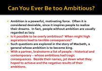 Ambition is a powerful, motivating force. Often it is