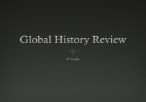 Intro to Geography Term Definition Latitude Lines of equal distance measured north & south of equator Longitude The curving distance east & west of the Prime Meridian; stretches from North Pole to South Pole Equator Zero degrees latitude, divides the Earth between north and south Prime Meridian Zero degrees longitude, divides the Earth between east and west Hemispheres Half of the Earth Absolute Location A point on the earth's surface expressed by a coordinate system such as latitude and longitude. Relative Location A location of a place in relation to another place (i.e. south or downhill). Geographic Features Geographic Feature Definition Effect Example Deserts Natural barrier; protection Limits trade, travel Sahara Desert Irregular Coastline Natural harbors Easier to invade Greece, Italy Island Protection Few natural resources, isolation Japan, Cuba, Madagascar Russia Lack of Warm Water Ports Monsoons Seasonal wind The rainy season accompanying the wet monsoon India Geographic Features Geographic Feature Definition Effect Example Mountain Protection from invaders Lack of cultural diffusion Andes Rainforests Resources- wood, medicine Limits interaction of people Amazon Regular Coastline Difficult to invade No natural harbors Africa River Valley Fertile soil Unpredictability of flooding Strategic Location Geographic or social position which plays a part in predetermined plan Tigris/Euphrates River Valley Fields of Study in Global History 1. Archeologist - F 2. Anthropologist - C 3. Sociologist - E 4. Economist - D 5. Geographer - A 6. Historians - B 7. Political Scientist - G Culture Culture: The shared beliefs, customs, practices, and social behavior of a particular nation or people. Cultural diffusion: The spreading of ideas through contact from one people to another. Characteristics of Culture: Cities, Organized Government, Religion, Job Specialization, Social Classes, Writing, Art/Architecture, Public Works In what ways can cultural diffusion occur: Trade or war. Religion Monotheism- belief in one God Polytheism- belief in many gods Religion Religion Book Location Basic Beliefs Animism None Africa All things in nature have a spirit Buddhism Tripitaka India Four Noble Truths; Eightfold path, Nirvana, Reincarnation Confucianism Analects China Five Relationships, Filial Piety Daoism/Taoism The Way of Virtue China People should live in harmony with nature, yin/yang (balance) Hinduism Upanishads India Karma, Dharma, Caste System, Reincarnation Shintoism None Japan All things in nature have a spirit Monotheistic Religions Judaism Torah/Talmud Middle East Ten Commandments Christianity Bible Europe Christ is Messiah, Ten Commandments Islam Qur’an, Koran Middle East Five Pillars, followers called Muslims First Civilizations The Neolithic Revolution allows for civilizations to form as people stopped hunting and gathering and began growing their own food. Early Civilization: Fertile soil Transportation Trade and communication Early Civilizations Egypt Pyramids Pharaohs Mummification Hieroglyphics North Africa Nile River Mesopotamia Fertile Crescent Cuneiform Ziggurats Hammurabi’s Code Tigris River Euphrates River India Grid pattern cities (Indus) Gupta Civilization- decimal system, plastic surgery Indus River Stupas China Mandate of Heaven Great Wall Civil Service Exams Huange He River Dynastic Cycle First Civilizations Vocabulary Pharaoh: an Egyptian god-king Ziggurat: a religious temple in Mesopotamia Hammurabi’s Code: codified system of laws, “eye for an eye” Mandate of Heaven: the divine right to rule that comes from God Civil Service Exam: a test that is taken by a person in order to get a government job First Civilizations DBQ 1. Controlled food supply; cultivation of edible plants; breeding of animals; became farmers and herdsmen 2. Location of river valleys 3. Taxing people too much; stops protecting people; infrastructure decays; treats people unfairly 4. Brings peace; rebuilds infrastructure; gives land to peasants; protects people 5. Pioneered use of herbs to treat illness; set bones; plastic surgery; vaccinating against smallpox 6. Vaccination of smallpox. Ancient Greece The Greeks developed many individual city-states because geography (mountains/waterways) isolated them from one another. The two most important city-states were Athens (golden-age) and Sparta (militaristic). One of the most important achievements of the Greeks is in the area of government. They developed a form of democracy. Alexander the Great spread a form of culture known as Hellenistic Culture. Famous philosophers include Socrates, Plato, and Aristotle. Ancient Greece: Vocabulary Practice Golden Age: a period of peace and prosperity Polis: another name for a Greek city-state Socratic Method: asking questions to develop an answer Hellenistic Culture: blending of Greek, Persian, Egyptian, and Indian culture Direct Democracy: each citizen take part in the day-today running of the government Ancient Greece: Venn Diagram • Limited democracy • Laws made by assembly • Only male citizens in assembly • Trade with other city-states • Education for boys • Women inferior Athens • Greek language • Mythological heroes • Olympic Games • Gods and religious beliefs Same • Monarchy with two kings • Military school • Trade/travel not allowed • Military training for all boys • Girls trained to be mother of soldiers • Women own property • Women obey men Sparta Ancient Greece DBQ 1. Democracy 2. Government favors the many instead of the few; advancement is open to everyone according to ability; every citizen has equal opportunity to serve the public; do not discriminate against the poor. 3. Columns. 4. Student answers may vary. Ancient Rome Rome lasted from 509 B.C. until 476 A.D. and its history is divided into two periods, Roman Republic and Empire. The Roman Republic was ruled by Consuls, patricians (senators), and plebeians. The Roman Empire begins when Julius Caesar becomes dictator. 