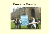 Pressure Groups Defining pressure groups • • • • • An organisation which seeks to influence policy and details of a comparatively small range of public policies do not seek to make those decisions themselves…. When the Countryside alliance knew it could not prevent ban hunting with dogs 2003-4, sought instead to influence details of legislation. Pressure Groups operate on different levels of government- e.g. level of ministers and civil servants, Westminster or regional assemblies, parliament, Local Government, EU, Judiciary and the courts. Having lost the anti hunting legislation in Parliament, the Countryside alliance 2004 tried to get courts to rule the legislation was invalid- again failed and returned to Parliament post 2011 to get legislation overturned. Pressure Groups have representative function- Some represent professional groups or another category some a much wider constituency- environemenatlistss or anti smoking lobby, Campaign for Batter Transport. Educative- raise awareness of issues- Countryside alliance aim to raise awareness of problems those in rural areas, Liberty and Unlock democracy aim to promoote human rights. Pressure Groups can provide a means for public engagement with the political process on a less intense level than membership political process than a party. Presssure groups deal with narrower issues whereas parties require support across whole spectrum of public policy. Functions • Help to inform government and ensures interests and views of public are considered in policy thereby improve quality of policy making. • Representative- Either via represent specific sections of public or claim to represent best interests of community as a whole. • Educate and inform about politically important issues. • Less intensive but more relevant opportunity for political participation than political parties can. • Scrutinise legislative and policy proposals. • Tension release- provide outlet for feelings significant sections fell very strongly about. Opposition to 2003 Iraq war, hunting with dogs, airport expansion etc. Similarities and differences with political parties • • • • • Similarities Both attempt to influence policy Both are representative claiming to channel communication between sections of the community and those who govern. Both try to mould and mobilise public opinion. Some pressure groups do feel need to transform themselves into a partyTrades Unions formed the LRC 1900 and British Ecology Movement eventually created the Greens.. UKIP was a pressure group 1990s. • • • • • Differences Pressure groups do not seek political power. Parties therefore have to address full range of political issues Parties must accept responsibility for policies they propose and governments are accountable for what they do- Greenpeace can oppose GM crops without having to be accountable it might condemn millions to starvation. ASH campaigned for ban in smoking public places it did not have to be responsible for loss government revenue. If a pressure group contests elections single issues parties such as Animals Count and Senior citizens party 2010 was to raise awareness and publicity. Classification of groups • • Sectional or interest Represent a specific section or group and are self interested e.g. unions. Others represent other economic sections such as Taxpayers’ alliance or NFU or people with specific conditions- Multiple Sclerosis society or the Heart Foundation, also those which represent sports, pensioners, children etc. • • Cause or Promotional Claim not to represent specific group but serve the interests of whole community, often do not have a specific membership but a small group of activists. Environmental groups- Greenpeace, Friends of the earth, RSPB National trust. May also be temporaryAnti poll tax Federation 1989-90 • Dual-Function May be both sectional and cause based. Countryside alliance represents people who live in rural areas but campaigns for better quality of life in countryside to benefit all. Also here are groups such as AA or unions which perform specific service for members but also campaigns within the political system on their behalf. . Groups such as NSPCC and cancer research seek funds and legislation to help those whom they serve and offer wide range of services and expend much effort in Rising finance. • Difficult to define groups- IRA are terrorist groups pressure groups? Think Tanks such as the Adam Smith Institute which researches issues covering free markets arguably are PR groups but will not be considered as such. Insider groups • • • • • • • It has become part of the decision making process. They can take part in development of policy and hope to mould it… They may be consulted regularly by government. They can provide government with useful information and express views of members- CBI produces reports on how businesses operate and what are its attitudes towrds issues such as business taxation, employment regulations, trade and economic policy etc… Also informs govt about how business perform regarding investment, sales expectations, exports production costs. Some are insider because permanent seats on govt policy cttees and agencies putting them at centre of decision making process- NFU. They are insider if set up by govt and funded by tax money and are part of govt not just insiders Commission for Equality and Human rights, Office of Fair trading Insider groups often called to select cttee hearings and so have an input in making govt accountable. European insider groups such as unions and business employers’ orgs attach themselves to various sections of European Commission which develops EU policy and operate extensively with European Parliament which has inc impact policy also seek to gain insider status with the devolved bodies. Insider groups by implication and necessity must act in certain way- have to act within parliamentary system and are therefore co