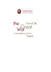 Scientific Direction Antonello Folco Biagini Giovanna Motta Centro di ricerca Cooperazione con l'Eurasia, il Mediterraneo e l'Africa sub sahariana Facoltà di Lettere e Filosofia Dipartimento di Storia, Culture, Religioni Editing Antonello Battaglia Diana Shendrikova Anida Sokol SCIENTIFIC COMMITTEE Dominique Arel, Ottawa University Annette Becker, Paris West University Nanterre La Défense, Museum of the Great War and Research Centre Francesco Benvenuti, University of Bologna Antonello Folco Biagini, Sapienza University of Rome Stefano Bianchini, University of Bologna, Center for East-Central European and Balkan Studies Paola Carucci, Manager of Historical Archives of the President of the Republic Mariam Chkhartishvili, Ivane Javakhishvili, Tbilisi State University Daniele Conversi, University of the Basque Country and Ikerbasque, Bilbao Roberto Pasca di Magliano, Sapienza University of Rome Pasquale Fornaro, University of Messina Ljubomir Frčkoski, St. Cyril and Methodius University, Skopje Altay Goyushov, Baku State University Ivo Goldstein, University of Zagreb, Ambassador of Croatia to France Cesare La Mantia, University of Trieste Mark Levene, University of Southampton Andre Liebich, Graduate Institute of International and Development Study, Geneva Giovanna Motta, Sapienza University of Rome Mario Morcellini, Sapienza University of Rome Matteo Pizzigallo, University of Naples Federico II Julius H. Schoeps, Moses Mendelssohn Centre for European Jewish Studies, Potsdam Stanislaw Sierpowski, University of Poznan Cornel Sigmirean, Petru Maior University of Târgu-Mureş Roberto Sinigaglia, University of Genoa Zafer Toprak, Bosphorus University, Istanbul Luciano Tosi, University of Perugia John Treadway, University of Richmond Lucio Ubertini, IHP Unesco – Italian Committee STEERING COMMITTEE Antonello Battaglia Andrea Carteny Giovanna Motta Gabriele Natalizia Diana Shendrikova Anida Sokol Alessandro Vagnini GENERAL INFORMATION AND PROGRAM HOW TO GET HERE FROM FIUMICINO AIRPORT "LEONARDO DA VINCI" BY TRAIN: (recommended): The best option is to take the no-stop train “Leonardo Express” to Termini station (travel time: about 30 minutes), which costs 14 euro. From Termini follow the instructions below. The train timetable and fares can be found on the TRENITALIA website. BY TAXI: The official fixed rate (all included) from Fiumicino airport to any destination within the ancient Roman walls (Mura Aureliane), including Sapienza campus, is 48 euro. To Sapienza campus it takes about 50 minutes. FROM CIAMPINO AIRPORT "G. B. PASTINE" (recommended): Connections to Termini station (in about 30-40 minutes) by the bus services ATRAL, COTRAL, SIT and TERRAVISION companies. The fare is about 5 euro. From Termini follow the instructions below. BY TAXI: The official fixed rate (all included) from Ciampino airport to any destination within the ancient Roman walls (Mura Aureliane), including Sapienza campus, is 30 euro. The ride to Sapienza campus takes about 30 minutes. BY BUS FROM TERMINI TRAIN STATION: The campus is located within 15 minutes walking distance from Termini station. Leave the station through the right side exit (Via Marsala) and follow these directions. Alternatively take one of the taxi cabs outside the front entrance of the station. 7 PUBLIC TRANSPORTATION: SUBWAY: Take the Line B and stop at Castro Pretorio. The campus is within 10 minutes walking distance. BUS: Several bus lines stop in the streets around the campus. The ticket price for a single ride is 1.50 euro and they need to be purchased in advance. To plan your trip, visit the ATAC website. USEFUL LINKS: PUBLIC TRAIN NETWORK: http://www.fsitaliane.it/homepage_en.html FIUMICINO AIRPORT: http://www.adr.it/web/aeroporti-di-roma-en-/pax-fco-fiumicino 8 CIAMPINO AIRPORT: http://www.adr.it/web/aeroporti-di-roma-en-/pax-cia-ciampino BUS AND SUBWAY PUBLIC NETWORK: http://www.atac.roma.it/index.asp?lingua=ENG 9 SAPIENZA CAMPUS MAP 10 DETAILS: The panels will take place at Sapienza-University of Rome, Piazzale Aldo Moro 5, 00185 Rome, in five different rooms (Aula). Faculty of Humanities (Facoltà di Lettere e Filosofia), ground floor: AULA I, AULA II, AULA III. Faculty of Humanities (Facoltà di Lettere e Filosofia), floor –1 Aula “a vetri”. The Rectorate Building, ground floor: Aula Organi Collegiali CONFERENCE FLOOR MAP: GROUND FLOOR 11 CONFERENCE FLOOR MAP: - 1 FLOOR 12 CONFERENCE FLOOR MAP: RECTORATE BUILDING 13 CONFERENCE FLOOR MAP: RECTORATE BUILDING–AULA ORGANI COLLEGIALI 14 REGISTRATION, DINNER, LUNCH REGISTRATION: Registration will be held at the Faculty of Humanities (Facoltà di Lettere e Filosofia), on the ground floor. The Information desk will be open on Thursday starting from 12:30 and Friday starting from 9:00. DINNER: June 19, 20:30. The dinner will be held near the University at Casa dell’Aviatore, Viale dell’Università 20, 00185 Rome. Dinner and lunch are included in the price of the participation fee. LUNCH: June 20, 13:15-14:30. The lunch will be served at the campus of Sapienza-University of Rome, Rectorate Buildig - aula degli Organi Collegiali. 15 16 Full Program JUNE 19, 2014 18 19 20 OPENING OF THE CONFERENCE Antonello Folco Biagini Vice Rector, Sapienza University of Rome June 19, 2014 AULA I 15:00 June 19, 2014 AULA I 15:15-16:45 Session A THEORY, HISTORIOGRAPHY, MEMORY Panel A-1 CHAIRMAN ANTONGIULIO DE’ ROBERTIS ALEXANDER TSURTSUMIA Geopolitical Changes Before and After WWI DMITRY SHLAPENTOKH WWI and the Birth of Russian Eurasianism MARTA TURKOT The Memory of World War I: Diverse European Perspective VALERIO TORREGGIANI Decentralizing Political Powers: G.D.H. Cole and the Guild Socialism Reaction Against the State (1915-1919) ALBERTO BECHERELLI Remembering Gavrilo Princip 23 June 19, 2014 AULA I 17:00-18:30 Session A THEORY, HISTORIOGRAPHY, MEMORY Panel A-2 CHAIRMAN ALESSANDRO SAGGIORO RADU MÂRZA NIKOLA BECKER ELENA DUNDOVICH MATTIA GUSELLA NATALIA TRUBNIKOVA OKSANA V. PETROVSKAYA 24 Ye