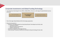 • Line of Business Technology for Front Office, Middle Office, Finance in a full range of Capital Markets business