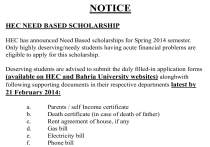 HEC has announced Need Based scholarships for Spring 2014 semester.