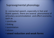 • vowel reduction and weak forms