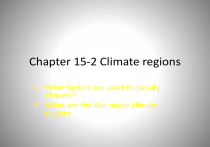 – Tropical-Hot rainy, dry- little precipitation, temperate marine- humid and mild, temperate continental- warm summers cold winters, Polarcool summers cold winters