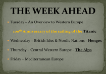 Tuesday – An Overview to Western Europe