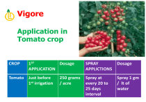 •3 Sprays of Vigore on tomato crop with and interval of 20 days has