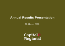 Annual Results Presentation 13 March 2013 Agenda Key Events Operations Asset Management 2012 Results Strategy & Outlook Questions & Answers 2 Key Events 3 Key Events • Significant progress in execution of strategic plan – Total consideration from disposals of non core assets of £50.2m including performance fee of £2.6m representing 28.6% of statutory NAV at 30 June 2012 – Purchase of units in The Mall at a discount of 28.5% taking the Group’s share to 20.33% and acquisition of Redditch, increasing our focus on UK shopping centres • Proforma see-through net debt to property value fell to 55% compared to 65% at 2011 year end • Robust recurring pre-tax profit of £17.0m, up 3.7% from 2011 • Strong operating performance of UK shopping centres demonstrated by occupancy on a like for like basis at year end rising to 96.7% from 96.1%, despite administrations in the year • Significant step forward for asset management and development at Lincoln, Hemel Hempstead and Redditch • Fall in basic NAV per share to 51p, compared to 56p at 2011 year end and 53p at 30 June 2012, primarily reflecting German impairment in the first half 4 Operations 5 UK Shopping Centres - Overview • £1 billion property portfolio • 66% of shopping centres in London and SE England • 10 town centre locations • Majority of locations dominant in the local community • Affordable rents - average rent per sq ft of £20 (zone A: £25-£145) offering real competition to out-of-town • Ownership of car parking and good public transport facilities • Management platform facilitates rapid adaption to changing patterns of consumer behaviour 6 UK Shopping Centres - Administrations 2012 • 69 units put into administration 2012, passing rent of £5.8m (7.1% of 2012 year end passing rent) • Strategy to maintain occupancy and trading vibrancy – 46 re-let – 4 open and expected to be re-let – 5 part of on-going asset management plans – The 14 remaining units have closed (passing rent of £0.7m) 2013 • By end February 2013, 13 units have entered administration, with passing rent of £1.3m (1.6% of 2012 year end passing rent). Of those: – 6 units (£0.7m rent) open and trading – 2 units (£0.2m rent) re-let in excess of pre-administration passing rent – 1 unit (£0.1m rent) forming part of development – 4 units (£0.3m rent) closed 7 Administrations – Case Study HMV 2 HMV units dealt with prior to administration £251k passing rent 5 HMV units into administration £434k passing rent • Wood Green - re-let to Morrisons Local • Redditch - open and trading • Camberley - taken back for TK Maxx development • Blackburn - open - Heads of Terms nearing completion for new retailer as part of reconfiguration • Luton - open - sub-tenant of Primark (No rental impact on C&R) • Sutton Coldfield - re-let to Paperchase (pre-administration) • Walthamstow - re-let to Choice Retail (pre-administration) Passing rent for the 7 units targeted likely to increase by approximately 10%, reflecting under-renting of HMV units 8 Asset Management 9 Asset Management – Key Themes • Increasing demand from leisure operators within our UK shopping centres • Demand for space from fashion and department stores • Reconfiguration of space and introduction of new technologies to accommodate multi-channel strategies • Significant progress in asset management initiatives at Hemel and Great Northern, where All Star Lanes has now opened, improving the investment case for both properties • Negotiations with anchor retailers on the key expansion and development opportunities within our schemes notably at Walthamstow and Camberley 10 Technological and Operational Highlights • Free Wi-Fi introduced across The Mall portfolio • Mobile enabled website launched in Q2 – 45% of traffic now from mobile devices • Mall App launch Q4 provides shoppers with exclusive offers at participating retailers • Click and Collect partner ByBox agreement reached in Q1 2013 • Ancillary revenues up 4.5% on 2011 • Service charges average £4.30 psf, 15.7% below industry average 11 Kingfisher, Redditch – Asset Management • Introduction of three new retailers – Entertainer, Select and Pandora (5,200 sq ft combined) • Submission of planning application for 19,000 sq ft family dining hub • Heads of Terms agreed with gym operator to take 15,000 sq ft in basement of vacant former TJ Hughes unit • First steps to repositioning Evesham Walk as fashion centre of scheme • Heads of Terms agreed to relocate Poundland into vacant former Peacocks store • Exploring options for introduction of food store to satisfy operator demand • Mall income increased by 22% in first nine months of ownership • Following insolvencies of Clintons, Game and Jessops, we have secured continued occupation for each under new terms at aggregate headline rents ahead of ERV 12 The Mall, Luton – Asset Management • New 22,500 sq ft H&M opened December 2012 • New lettings to - Stormfront (Apple) (2,700 sq ft) - Pandora (2,200 sq ft) - Vodafone (2,000 sq ft) - Barratts (2,900 sq ft) • New lettings agreed post insolvency with - Peacocks (12,400 sq ft) - Clinton Cards (5,400 sq ft) • Refurbishment of Debenhams store completed (130,000 sq ft) • Demolition of Library car park completed thereby creating a development site adjacent to the adjoining leisure centre 13 The Mall, Camberley – Asset Management Development Progress – Proposal to deliver 291,000 sq ft extension – Scheme design and draft Heads of Terms agreed with Local Authority – In discussions with an anchor tenant – Significant growth opportunity for Camberley town centre supported by local planning framework Asset Management – Letting of new 20,000 sq ft unit to TK Maxx (amalgamation of four units) – Other lettings secured to Trespass (4,000 sq ft), T Reds (4,200 sq ft), Barratts (2,250 sq ft) and Clintons relocation (2,550 sq ft) – Renewals secured with Thorntons,