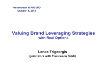Presentation at PUC-RIO October 8, 2012 Valuing Brand Leveraging Strategies with Real Options Lenos Trigeorgis (joint work with Francesco Baldi) Agenda 1 Introduction/Motivation 2 Brand equity development and leveraging as multistage option 3 Valuation of Starbucks’ brand leveraging options and impact on share price (under growth scenario –June 2007) 4 Revised appraisal based on alternative forward brand leveraging strategies (under downturn conditions –Dec 2008) 5 Assessment of risks underlying brand leveraging strategies 6 Conclusions/Implications 2 1 Introduction/Motivation In today’s knowledge economy, the sources of competitive advantage have shifted from tangible to intangible assets (Foray and Lundvall, 1996; Eustace, 2000) 50-90% of corporate value derives not from (physical) assets in place, but from leveraging IP/intangible assets Brand represents a key market-based intangible asset that can shape a firm’s competitive advantage Given high market uncertainty (changes in customer needs or product opportunities), it is crucial for managers to pursue a flexible brand leveraging strategy (Ambler, 2000; Fisher, 2007) 3 Introduction/Motivation Some challenging marketing issues: How can a parent brand be exploited as a flexible platform in pursuing brand expansion or extension opportunities? How can the firm actively manage such embedded marketing flexibility? How can management assess the risks posed from leveraging brand assets? (Aaker, 2004) We revisit brand valuation and management, merging ideas from marketing and finance to understand marketing flexibility. We build on two key ideas: (1) effective brand management presupposes brand equity valuation ability (Keller and Lehmann, 2003); (2) brand is an intangible asset that can be leveraged (similar to tangible assets) providing managers with important leveraging (brand expansion and extension) options (Srivastava, Shervani and Fahey, 1998) 4 Main Research Challenges Keller and Lehmann (2006): “How do you assess the option value of the extension potential of a brand?” Brand – whose equity can be developed and leveraged over its life-cycle - should be actively managed contingent on future developments In developing a dynamic or active brand management, we also respond to a second research challenge (Keller and Lehmann, 2006): “How should a brand be built and managed as a growth platform?” 5 Dominant Literature Streams/ Brand Equity Measures Brand Equity Measures Customer-based measures Market-based firm performance outcomes (attitudes, awareness, image, loyalty, knowledge) Product Market Financial (premium price, volume, revenue or profit) (DCF of brand licensing, multiples/transaction prices) (present focus) (present + future potential?) Brand Option Premium (brand expansion + extension options) (present + future options) 6 A Conceptual Framework FIRM VALUE (V) TANGIBLE ASSETS (or ASSETS IN PLACE) (TA) INTANGIBLE ASSETS (IA) (ADJUSTED EQUITY VALUE or AE) (PV OF GROWTH OPTIONS or PVGO) SPECIFIC INTANGIBLES (SI) GENERIC INTANGIBLES (G) (STAND-ALONE) (GOODWILL) TA MARKET-DRIVEN TA MARKETINGRELATED INTANGIBLES TECHNOLOGYRELATED INTANGIBLES INFRASTRUCTURERELATED INFRASTRUCTURERELATED INTANGIBLES Intangibles 1. Infrastructure-related IA 2. Technology-related IA Firm Reputation Skilled/Motivated Human Capital Organizational Capabilities, Culture and Processes Info. Systems, Control and Decision-Support Systems Commercial Licenses and Generic Assets 3. Marketing (or Customer)-related IA Research & Development Patents and Licenses Industrial Secrets Databases/Software Technology or Production Know-how Design/Styling Name/Logo of Company Brand/Expansion & Extension Loyal Customer Base & Cross-Selling Potential Promotion & Advertising/ Marketing Strategies Product Guarantees Graphics, Label & Packaging Public Relations 2 Brand Equity Life-cycle Development - Staging I. Launch –quality perception created such that the consumer, through feeling of superior performance, can positively assess the brand and store it in memory II. Reinforcement – positive attitudes stored in memory influence consumption behavior (if readily retrievable). Managerial actions foster attitude accessibility making the brand easy to remember (maintaining consistent brand image) III. Leveraging/Exploitation – strong parent brand equity leveraged by (i) Brand expansion of existing products to new markets or customers (new geographic areas, market segments or distribution channels) (ii) Brand extension of parent brand to new products (line or categories) Brand equity built during first two stages and exploited during the third. Brand equity development like compound (multi-stage) growth option Brand Development as Multistage Option (1) (2) (3) (4) (5) PARENT BRAND BUILDING OPTIONS BRAND LEVERAGING OPTIONS PARENT BRAND BUILDING STAGE BRAND LEVERAGING LAUNCH REINFORCEMENT BRAND EXPANSION Launch Option Reinforcement Option Expansion Option BRAND EXTENSION LINE EXTENSION STAGE Extension Option (4) OPTION OPTION E L max(I L eL PBV;0) E R max(I R eR PBV;0) E EXP max(I EXP eEXPPBV;0) CATEGORY EXTENSION (5) E EXT max(I EXT eEXT V;0) Expanded Brand Equity Value (BEV) Matrix BRAND EXPANSION BRAND EXTENSION iv ii (CUSTOMERS) Existing (3) New Distribution Channel (5) New Products in New Markets BRAND EQUITY LEVERAGING MARKETS New Geographic Area New Market Segment BRAND EQUITY LEVERAGING New (1) (2) i iii (4) New Products to Existing Customers (cross-sell) PARENT-BRAND BUILDING (launch & reinforcement) Line Extension Existing New Categories New PRODUCTS 11 Brand Equity Leveraging Options E = Max(- I + e*V; 0) (1) (2) (3) (4) (5) 12 Expanded Brand Equity Value (E-BEV) E BEV PBV E EXP E EXT Parent Brand Brand Leveraging Value Options E-BEV ExpandedEquity Value Value of Net Assetsin Place PBV Brand Leveraging Options Base DCF component Growth Options component 13 Valuing Starbucks’ Brand Starbucks is the world’s leading retailer of specialty coffee with one of