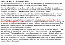 •Air that is forced to move down has work done on it by the atmosphere. If no heat is