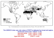 The UNESCO index uses ratio values of P/ETP to delineate four broad arid regions.