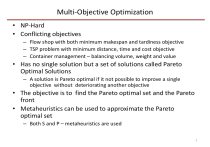 • Metaheuristics can be used to approximate the Pareto