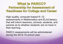 PARCC assessments will be administered during the 2014-15 school year.