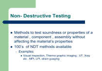 Visual Inspection, Thermo graphic imaging , UT, Xray