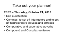 • Commas: to set off interrupters and to set