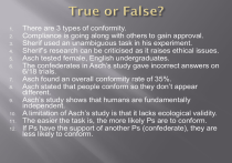 The easier the task is, the more likely Ps are to conform.