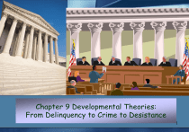 Chapter 9 Developmental Theories: From Delinquency to Crime to Desistance 1 Chapter Summary Chapter Nine is an overview of the developmental theories. The Chapter begins with an overall discussion of delinquency and the patterns associated with delinquency. The chapter continues with a discussion of ADHD and conduct disorder, and how these disorders are related to delinquency. The Chapter then turns the discussion to the major developmental theories, as well as an evaluation of each of the theories. Chapter Nine concludes with the policy implications that developmental theorists adhere to. 2 Chapter Summary After reading this chapter, students should be able to: Understand the importance of delinquency Identify risk factors for delinquency Understand Agnew’s super traits theory Explain Sampson and Laub’s age grade theory Discuss Farrington’s ICAP theory Discuss Moffitt’s dual pathway theory Evaluate the developmental theories Recognize the policy implications of the developmental theories 3 Introduction Developmental theories are dynamic in that they emphasize that individuals develop along different pathways, and as they develop factors that were previously meaningful to them no longer are, and factors that previously meant little to them suddenly become meaningful. Developmental theorists look at social, psychological, and biological factors simultaneously. 4 Introduction Delinquency: A legal term that distinguishes between youthful offenders and adult offenders that has its origins in the concept of culpability. Except in rare instances, juvenile offenders are not referred to as criminals. Acts that are forbidden by law are called delinquent acts when committed by juveniles. 5 The Extent of Delinquency Juveniles do commit a disproportionate percentage of the UCR’s Part I index crimes. In 2003, youths under 18 accounted for 15.5% of Part I index violent crimes and 28.9% of Part I index property crimes. Delinquent pattern appears at puberty and they slowly burns itself out after reaching its peak between 16 and 18. The age peak in delinquency remains unexplained by any known set of sociological variables. 6 Puberty, Adolescence, and Change Puberty: A developmental stage that marks the onset of the transition from childhood to adulthood. Adolescence is a process that begins at puberty and ends with adulthood. Adolescence is a period of limbo in which individuals no longer need parental care, but are not yet ready to take on the roles and responsibilities of adulthood. 7 Figure 9.1. Illustrating the Age Curve in Different Countries at Different Times From Ellis & Walsh, Criminology: A Global Perspective (2000) p. 109. 8 Figure 9.2. Testosterone Levels of Human Males and Females Across the Lifespan Source: Ellis and Walsh, Criminology: A Global Perspective (2000) 9 Puberty, Adolescence, and Change During adolescence there is an increase in testosterone, changes in the ration of excitatory and inhibitory neurotransmitters, and the physical restructuring of the brain. The earlier the onset of puberty, the greater the level of problem behavior for both boys and girls. Around the age of 20, the transmitters start to decrease and the inhibitory transmitters start to increase. Thus, more adult-like personality traits emerge. 10 Puberty, Adolescence, and Change Terrence Thornberry, David Huizinga, and Rolf Loeber (2004) focus on the escalation of seriousness of delinquent acts being committed as boys age. The overall finding is that as boys get older, their crimes become more serious 11 Figure 9.3 Three Pathways to Boys’ Disruptive Behavior and Delinquency Source: Thornberry, Huizinga, & Loeber, 2004. U.S. Department of Justice: Juvenile Justice 12 Table 9.1 Delinquency Risk Factors by Domain Domain Early Onset (Ages 6–11) Late Onset (Ages 12–14) Protective Factors Individual Being male ADHD/impulsivity Medical, physical problems Aggression Low IQ General offenses Problem (antisocial behavior) Substance abuse Exposure to TV violence Antisocial attitudes, beliefs Dishonestya Restlessness Difficulty concentrating a General offenses Risk taking Aggression a Being male Physical violence Antisocial attitudes, beliefs Crimes against persons Low IQ Substance abuse Intolerant attitude toward deviance High IQ Being female Positive social orientation Perceived sanction for transgressions Family Low socioeconomic status Antisocial parents Poor parent-child relationship Harsh, lax, or inconsistent parenting Broken home Separation from parents Abusive parents Neglect Poor parent-child relationship Low socioeconomic status Harsh, lax, or inconsistent parenting Poor monitoring, supervision Antisocial parents Broken home Abusive parents Family conflict a Warm, supportive relationship with parents and other adults Parent’s positive evaluation of child’s peers Parental monitoring 13 Table 9.1 Delinquency Risk Factors by Domain Domain Early Onset (Ages 6–11) Late Onset (Ages 12–14) Protective Factors School Poor attitude, performance Poor attitude, performance Academic failure Commitment to school Recognition for involvement in conventional activities Peer group Weak social ties Antisocial peers Weak social ties Antisocial, delinquent peers Gang membership Friends who engage in conventional behavior Neighborhood crime, drugs Neighborhood disorganization Stable, organized neighborhood Community Adapted from Office of the Surgeon General, 2001. U.S. Department of Health and Human Services. a. Males only. 14 ADHD & CD Risk factor: Something in individuals’ personal characteristics or their environment that increases the probability of violent offending. It is typical for risk factors to cluster together because the tendency is for miseries to multiply and advantages to aggregate. ADHD: A chronic neurological condition that is behaviorally manifested as constant restlessness, impulsiveness, difficulty with peers, disruptive behavior, short attention span, academic underachievement, risk taking
