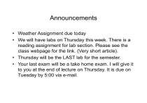 • We will have labs on Thursday this week. There is a