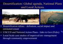 Desertification: Global agenda, National Plans