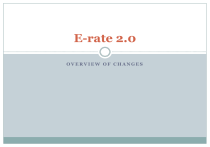 E-rate 2.0 OVERVIEW OF CHANGES Overview Framework for Reform Connectivity Goals Discount Calculation Changes Priority 1 Changes Priority 2 Changes Invoice Changes Program Streamlining Measures Cost Effectiveness Efforts Increased Accountability Tribal outreach Further Notice of Proposed Rulemaking History In July 2013, FCC released Notice of Proposed Rule Making (NPRM) seeking comments on various proposed reforms In December 2013, Tom Wheeler became FCC Chairman, vowing to modernize E-rate I March 2014, FCC issued Public Notice seeking more focused comments on proposed E-rate reforms On July 11, 2014 FCC voted 3-2 to adopt proposed reforms On July 23, 2014, 162+ page Order was released, providing details on E-rate program changes 50,000 Foot View Focus E-rate on funding broadband connectivity to buildings and inside buildings Accomplish program overhaul without increasing the funding cap Limited funds means there are hard choices Phase out voice services and end funding of other legacy services beginning FY 2015 Ambitious broadband connectivity goals Establish P2 budgets per student (minimum amount per building) to allow all applicants to receive funding for equipment inside buildings P2 funding limited to broadband infrastructure and equipment, no more voice or video equipment eligibility Streamline program requirements to issue funding approval letters more timely Share data about pricing and connectivity levels to promote better pricing Short Term Pain for Long Term Gain The Pain: In FY 2015 certain Priority 1 services not deemed essential for broadband connectivity will no longer be eligible Phase down of voice telecommunication services funding begins in FY 2015, 20 discount percentage points per year Very narrow Wireless data plans eligibility The Gain: All schools will have access to P2 Dedicated $1 Billion annual fund for Wi-Fi equipment Apply based on budgets amounts of $150 per student/$9200 per building minimum so no applicant receives disproportionate funding FCC projects it will cost $5 Billion over 5 years to fund all applicant’s Wi-Fi equipment projects Streamlining procedures to ease application process Connectivity Goals Internet WAN Connections Internal Connections Internet Connectivity Goals Schools Internet access of at least 100 Mbps per 1,000 students and staff (users) in the short term 1 Gbps Internet access per 1,000 users in the long term Measurement will be at the district level for school districts and school level for schools that are not part of a district WAN Broadband Connectivity Goals Schools Dedicated data service scalable to 10 Gbps per 1,000 students in the long term FCC assumes that in most cases, a 1 Gbps fiber connection can be readily scaled to 10 Gbps with upgraded networking Internal Connections Goals No goals set at this time because more information is needed FCC staff will conduct a survey of schools and libraries to determine the sufficiency of their LAN/WAN capacity and coverage Specific goals will be developed at a later time Discount Calculation Changes District Wide Discount Calculations Library Discount Calculations Rural/Urban Calculations Income Surveys Community Eligibility Provisions of NSLP District-Wide Discount Calculations All discounts will be calculated on a district-wide simple average basis Total district NSLP eligible students/total district enrollment Example School Rural/Urb an Enrollment NSLP eligibility Plainfield Elementary Jacksonville Middle School U 210 120 U 195 95 Newville High School U 201 115 Total U 606 330 330/606=54.4% NSLP eligibility District-Wide Discount=80% Library Discount Calculation Library systems that have branches or outlets in more that one public school district will use the address of the central outlet or main administrative office to determine which public school district the system is in Use school district’s discount application to central outlet or main office when applying as a library system or on behalf of individual libraries within that system New Urban/Rural Definition Current rural/urban county classifications no longer in use for FY2015 2010 U.S. Census will be used instead Urban applicants are those with addresses in an ”urbanized area” or “urban cluster” Urbanized area has 50,000 or more people in a densely settled core of census tracts Urban clusters are adjacent to an urbanized area and has at least 2,500 people All areas that are not considered “urban” are classified as rural Rural/Urban status of majority of buildings (physical addresses) will be used for entire district Question asked of FCC: What if a district has two buildings, and one has a rural address and the other has an urban address? Full list of urban areas at http://www2.census.gov/geo/ua/ua_st_list_all.xls. If your town is NOT on this list, then it is considered rural. (subject to verification with FCC) Surveys Income survey results can no longer be extrapolated Discounts will only be based on the income surveys actually collected Community Eligibility Provision CEP program provides a new alternative to NSLP household applications for free and reduced price meals in high poverty LEA’s No longer required to obtain individual income eligibility applications from each student NSLP estimates are derived from existing data from other income-based programs A school, group of schools, or the entire district must have an identified Student Percentage of 40% or more and must offer both breakfast and lunch daily to qualify for CEP For E-rate, CEP schools will use the 1.6 multiplier as is currently permitted by USDA and other federal programs Presumably, the NSLP eligibility data that will be entered into the Form 471. Block 4 discount calculation worksheet will already contain the 1.6 multiplier CEP schools must retain back-up calculations which may be requested during PIA and audits The previous FCC guidance that CEP schools must use the NSLP data from the year before they opted into CEP has been repealed 
