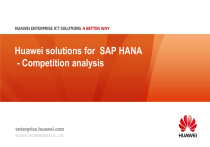 Huawei solutions for SAP HANA - Competition analysis Content 1 Huawei solutions for SAP HANA summary 2 Single node competition analysis 3 Huawei VS. IBM converged solution 4 Huawei VS. traditional solution 1 Complete offerings support various deployment options In the Cloud In the DataCenter SAP HANA One RH2288H + FusionSphere certified SAP HANA Enterprise Cloud Coming Single Host RH5885H V3 for Enterprise(XS/S/M/L/L+) RH2288H for SME- B1H,B1A Scale-out / HA cluster 2 FusionCube with distributed storage or SAN storage What Does Huawei Provide? 1. What we sell is highlighted in Orange, System maintenance including hardware, software, installation, Enterprise application Integration development and maintenance. 2. Database Software includes the SUSE OS Huawei/ Partner (including three-year warranty) 3. Installation Installation services: hardware, OS, and OS database installation Optional: Provide by Huawei or Partner 4. Installation is performed on site. 5. Huawei provides one-stop maintenance for all hardware . 3 Hardware maintenance Hardware Fastest Growing products in the server Market No.1 Transaction Processing Performance Council TPC spec Best Performance 105 VMmark world records in performance benchmark tests Source: Gartner 2013 analysis report 4 2013 Shipment growth rate in global markets No.2 2013 server shipments in China's market No.4 2013 server shipments in global market Optimized for performance • Pre-optimized and one-stop support • 100-100,000 times faster than a SingleNode:RH5885H V3 Scale Out:FusionCube traditional database High Reliability & Outstanding Performance: • Powered by RH5885H V3 with 53 reliability and service ability features • #1 in SPECint and SPECfp • Fastest write performance with 15% less latency and 20% more bandwidth • Most complete SAP HANA offering • Best scalability 5 Content 1 Huawei solutions for SAP HANA summary 2 Single node competition analysis 3 Huawei VS. IBM converged solution 4 Huawei VS. traditional solution 6 Huawei Solutions for SAP HANA– Single Node (IvyBridge) Business suite on HANA(SoH/OLTP) RH5885H V3 128GB(XS)->256GB(S)>512GB(M)->1TB(L)->2TB(L+) Business warehouse on HANA(BWoH/OLAP) … … ES3000 SSD Log volume Best Performance/Price ratio Best density, no additional JBOD needed HDD Smoothly Scale up Data volume Fastest PCIe SSD card in the world : Huawei ES3000, optimized for SAP HANA Low Cost configuration and High Performance configuration. Certification:http://scn.sap.com/docs/DOC-52522 10 Huawei Solutions for SAP HANA– Single Node configuration Basic configuration Server Model CPU Memory Log Volume Data Volume OS Upgrade Options XS S M L L+ RH5885H V3 RH5885H V3 RH5885H V3 RH5885H V3 RH5885H V3 2* IVB-EX E7-4880/4890 V2 2* IVB-EX E7-4880/4890 V2 2* IVB-EX E7-4880/4890 V2 4* IVB-EX E7-4880/4890 V2 4* IVB-EX E7-4880/4890 V2 128GB DDR3 256GB DDR3 512GB DDR3 1024GB DDR3 2048GB DDR3 1T from 8*900GB 10k 2.5" SAS 1T from 8*900GB 10k 2.5" SAS 1T from 8*900GB 10k 2.5" SAS 1T from 8*900GB 10k 2.5" SAS 2* 800GB ES3000 HDD , RAID 5 HDD , RAID 5 HDD , RAID 5 HDD , RAID 5 3T from 8*900GB 10k 2.5" SAS 3T from 8*900GB 10k 2.5" SAS 3T from 8*900GB 10k 2.5" SAS 3T from 8*900GB 10k 2.5" SAS 14*900GB 10k 2.5" SAS HDD , HDD , RAID 5 HDD , RAID 5 HDD , RAID 5 HDD , RAID 5 RAID 50 SLES 11.3 for SAP HANA 128G->256G>512G->1T->2T(easily upgrade by adding more components) High performance configuration Server Model CPU Memory Log Volume Data Volume OS Upgrade Options XS S M L L+ RH5885H V3 RH5885H V3 RH5885H V3 RH5885H V3 RH5885H V3 2* IVB-EX E7-4880/4890 V2 2* IVB-EX E7-4880/4890 V2 2* IVB-EX E7-4880/4890 V2 4* IVB-EX E7-4880/4890 V2 4* IVB-EX E7-4880/4890 V2 128GB DDR3 256GB DDR3 512GB DDR3 1024GB DDR3 2048GB DDR3 2* 800GB ES3000 2* 800GB ES3000 2* 800GB ES3000 2* 800GB ES3000 2* 800GB ES3000 8*900GB 10k 2.5" SAS HDD , 8*900GB 10k 2.5" SAS HDD , 8*900GB 10k 2.5" SAS HDD , 8*900GB 10k 2.5" SAS HDD , 14*900GB 10k 2.5" SAS HDD , RAID 5 RAID 5 RAID 5 RAID 5 RAID 50 SLES 11.3 for SAP HANA 128G->256G>512G->1T->2T(easily upgrade by adding more components) 11 RH5885H V3 server performance No.1 in the SPECint and SPECfp tests Improve 64% for TPC-E 6000 5000 Segment Benchmark Partner/Platform Absolute Result Relative Improvemen t 4000 Importance 3000 Technical computing SPECfp_rate_ba se2006 4 processor Huawei RH5885H V3 using Intel Xeon processor E7-4890 v2 (37.5M cache.2.8GHz) 1730 baseline result 2.3x performance over Intel xeon processor E7-4870 World Record 4-socket result Enterprise computing SPECint_rate_ba se2006 4 processor Huawei RH5885H V3 using Intel Xeon processor E7-4890 v2 (37.5M cache.2.8GHz) 2320 baseline score 2.1x performance over Intel xeon processor E7-4870 World Record 4-socket result (Tie) Source: Intel Official Website http://www.intel.com/content/www/us/en/benchmarks/server/xeon-e7-summary.html 12 2000 1000 0 RH5885H V3 (3TB) X3850 (2TB) RH5885 V2 (1TB) IBM X3850 (1TB) RX500 S7 (1TB) DL580 G7 (1TB) Better Performance of PCIe SSD Card FUSION-IO STEC ioDrive2 Duo Kronos™ Turbo PCIe SSA Z-Drive R4 CM84/RM84 Z-Drive R4 CM88/RM88 ES3000 Model OCZ Huawei Flash granule SLC MLC MLC MLC MLC MLC Capacity 1.2 TB 2.4 TB 1.95 TB 300 GB, 600 GB, 1.2 TB 800 GB, 1.6 TB, 3.2 TB 800 GB, 1.2 TB, 2.4 TB Dimensions FH-HL FH-HL FH-HL HH-HL FH-3/4L FH-HL Bus interface Gen 2 x8 Gen 2 x8 Gen 2 x8 Gen 2 x8 Gen 2 x8 Gen 2 x8 Read bandwidth 3.0 GB/s 3.0 GB/s 2 GB/s 2 GB/s 2.8 GB/s 3.2 GB/s Read IOPS 950k (512 B) 892k (512 B) 220k (4 KB) - - 760K (4 KB) Read latency 47 µs 68 µs - - - 49 µs Write bandwidth 2.5 GB/s 2.5 GB/s 2 GB/s 2 GB/s 2.8 GB/s 2.8 GB/s Write IOPS 935k (512 B) 935k (512 B) 200k (4 KB) 250k (4 KB) 160k (8 KB) 410k (4 KB) 275k (8 KB) 240K (4 KB) Write latency 15 µs 15 µs < 50 µs - - 8 µs 13 Huawei Solution Advantage – Single Node(IvyBridge) Item Huawei IBM HP Hitachi Cisco Dell Fujitsu NEC 128G~2T √ √ √ x x √ √ x External JBOD NO yes yes x x NO yes x JBOD Power Consumption NO 100 watts 100 watts x x NO 100 wa