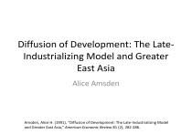 Amsden, Alice H. (1991), “Diffusion of Development: The Late-Industrializing Model and Greater East Asia,” American Economic Review 81 (2), 282-286.
