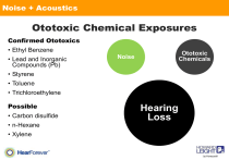 NOISE+AND Noise Acoustics ACOUSTICS ~ Hierarchy of Controls Ototoxic Chemical Exposures Confirmed Ototoxics • Ethyl Benzene • Lead and Inorganic Compounds (Pb) Ototoxic Chemicals Noise • Styrene • Toluene • Trichloroethylene Possible • Carbon disulfide • n-Hexane • Xylene Hearing Loss How We Hear The Auditory System Chem/Elec Acoustical Hydraulic Mechanical Hearing Protection Selection Hearing Protection Devices (HPDs) Single-Use / Multiple-Use / Detectable Earplugs Banded Earplugs Radio & Stereo Earmuffs Sound Amplification Earmuffs Passive Earmuffs Intelligent Hearing Protection Hearing Protection Selection Uniform / Flat Attenuation HPDs PRO • More natural sounds • Lower attenuation ideal for moderate noise environments • Ideal for hearing-impaired workers CON • Lower attenuation than most earplugs • Slightly higher cost Hearing Protection Selection Uniform / Flat Attenuation HPDs Speech will sound more natural with this earplug. 8000 4000 2000 1000 500 250 125 50 Attenuation in dB Variation in attenuation is only 5 dB in speech range (250 - 4kHz) 63 Frequency in Hz 45 40 35 30 25 20 15 10 5 0 Uniform Attenuation Earplug Conventional Earplug Hearing Protection Selection Intelligent Hearing Protection PRO • Communicate in high, changing noise • Increased situational awareness • Can integrate active hearing protection, ANR, fit testing, PSEM • Connect with radios • Compatible with other PPE CON • Higher cost than passive HPD • Control unit as additional PPE to wear • Appropriate for specific applications or environments (eg. intrinsically safe) Hearing Protection Selection Hazards of Overprotection Choosing a protector with an NRR higher than necessary may result in overprotection • Verbal communication may be hindered • Warning alarms may not be heard • Machine noises may be too diminished • HPDs may be removed Hearing Protection Selection Hazards of Overprotection Insufficient Protection 85 dB Acceptable Protection 80 dB Optimal Protection 75 dB Acceptable Protection 70 dB Possible Overprotection Hearing Protection Selection Hazards of Overprotection In the United States, 76% of noise-exposed workers need no more than 10 dB of protection. 90% need no more than 15 dB of protection. Hearing Protection Selection Hearing Protection Selection Factors Comfort • The right hearing protector should feel comfortable • One protector may not satisfy all workers • Offer a variety of earplugs or earmuffs to meet varying worker needs and preferences Hearing Protection Selection Hearing Protection Selection Factors Noise Reduction • Selecting HPDs with suitable attenuation for noise environment • Avoid overprotection in marginal noise environments • Consider banded earplugs for intermittent noise or electronic earmuffs for impact noise. Hearing Protection Selection Hearing Protection Selection Factors Size • Every ear canal has its own shape and size • Ensure proper fit with variety of earplug sizes and shapes • Sized multiple-use earplugs • Low-pressure foam earplugs for smaller ear canals Hearing Protection Selection Hearing Protection Selection Factors Communication • Keep workers connected to their environment • Uniform attenuation allows speech/signals to be hear more naturally • Sound amplification earmuffs for workers with hearing impairment Hearing Protection Selection Hearing Protection Selection Factors Job Requirements • Consider job requirements in HPD selection • Detectable earplugs for process industries • Hi-visibility earmuffs for dark/high traffic areas • Dielectric HPDs for electrical environments Hearing Protection Selection Hearing Protection Selection Factors •• Proper Roll vs.care No-Roll and earplugs maintenance can lifemultiple-use and • extend Foam vs. performance of HPDs earplugs Hygiene •• Examine cleanear Clean andand replace all multiple-use cushions on earmuffs every 4-6 months earplugs daily •• Clean replace Clean and and examine ear cushions on multi-use earplugs daily earmuffs every 4-6 months Hearing Protection Selection Hearing Protection Selection Factors Use w/ Other PPE • Cap-mounted earmuffs for hard hats • Multiple-position earmuffs for full-brim hard hats • Ultraslim neckband earmuffs with welding shields • Respirators preventing communication • Eyewear interfering w/seal of earmuffs, attenuation Hearing Protection Selection Hearing Protection Selection Factors • Awareness of surroundings • Understand what is happening around you • Communicate with coworkers (face-to-face or 2way radios) • Increased personal safety, avoid other risks • Avoid isolation from environment Connect w/ Environment Noise Reduction Rating How much noise is reaching the ear of the worker ? Noise Level NRR 100 dBA 25 dB It’s completely UNKNOWN! Noise Reduction Rating Noise Reduction Rating • A laboratory estimate of the amount of attenuation achievable by 98% of users when properly fit • A population-based rating ― some users will get more attenuation, some will get less The NRR is only a population estimate, not a predictor of individual attenuation. Noise Reduction Rating Determining the NRR • 10 human subjects tested in a simulated industrial room • Tested with ears open / occluded at nine frequencies • Each subject tested 3x • NRR calculated to be population average A test subject in the Howard Leight Acoustical Lab, San Diego, CA, accredited by the National Voluntary Laboratory Accreditation Program (NVLAP) Noise Reduction Rating NRR Determining the NRR NRR Number of test subjects 5 4 3 2 1 14 18 19 20 22 23 Attenuation 24 26 28 25 27 30 32 Noise Reduction Rating De-Rating Methods (US/CAN) NRR ÷ 2 Reduce NRR Class System pending feasibility of engineering controls Earmuffs NRR – 25% Formable Earplugs NRR – 50% All Other Earplugs NRR – 70% A up to 100 Fit Test B up to 95 C up to 90 Noise Reduction Rating Real-World Attenuation ≠ NRR 50 Attenua