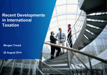 Recent Developments in International Taxation Mrugen Trivedi 28 August 2014 Contents I Indirect Transfers II E-commerce III Permanent Establishment IV Most Favoured Nation Clause V FTS – when clause is missing VI Supreme Court on AAR application VII GAAR VIII BEPS IX CBDT Circulars and Notifications 1 Taxation of Indirect transfers – Origins of the controversy Taxability of gains in India asserted on the basis of the following: Transfer of shares in overseas parent results in ‘indirect’ transfer of shares in Indian subsidiary There is a transfer of rights and entitlements in India such as ‘management rights’, ‘controlling interest’, ‘economic interest’ etc. situated in India by virtue of transfer of overseas shares Supreme Court’s verdict in the Vodafone International Holdings v. UOI [2012] 341 ITR 1 [SC] Section 9 not a look-through provision - No statutory basis for bringing ‘indirect’ transfers to tax ‘Rights and entitlements’ flow from the transfer of shares and are not separate capital assets Shares and the rights which emanate from them, flow together and cannot be dissected 2 Taxation of Indirect transfers – Origins of the controversy Retrospective amendments made by the Finance Act, 2012 Retrospective Amendments clarify: the situs of shares/interest in certain foreign companies for sec. 9(1)(i) the definition of “capital asset” under sec. 2(14) the definition of “transfer” under sec. 2(47) the meaning of the expression “through” in sec. 9(1)(i) Past notices etc. validated – Section 119 of the Finance Act, 2012 All notices, levies, demands, assessments etc. in respect of indirect transfers deemed valid notwithstanding any contrary judicial order Notices etc. cannot be called into question on any ground Amounts deposited /collected need not be refunded 3 Taxation of Indirect transfers – Origins of the controversy Situs of shares/interest in certain foreign companies Prior Legal Position: Situs of shares is where the company is incorporated and where its shares can be transferred Finance Act, 2012: (w.e.f. 1 April 1962) Share/interest in a foreign company deemed to be situated in India, if the share/interest derives, directly or indirectly, its value substantially from the assets located in India Definition of ‘capital asset’ Prior Legal Position: “Rights and entitlements” not identifiable or distinct capital assets from shares held Finance Act, 2012: (w.e.f. 1 April 1962) Capital asset deemed to include any rights in or in relation to an Indian company, including rights of management or control or any other rights whatsoever 4 Taxation of Indirect transfers – Origins of the controversy Definition of ‘transfer’ Prior Legal Position: Shares and the rights which emanate from them, flow together and cannot be dissected Finance Act, 2012: (w.e.f. 1 April 1962) “Transfer” deemed to include disposing of or parting with an asset / interest or creating any interest in any manner, notwithstanding that such transfer of rights has been characterised as being effected /dependent upon /flowing from the transfer of shares of a company registered or incorporated outside India Meaning of ‘through’ Prior Legal Position: “Through” did not mean “in consequence of” Finance Act, 2012: (w.e.f. 1 April 1962) The expression “through” deemed to mean “by means of”, “in consequence of” or “by reason of”. 5 Taxation of Indirect transfers – Areas of the controversy Impact of amended definition of ‘transfer’ and ‘capital asset’ Methods for determining value derived from India Availability of treaty benefits DEALT WITH BY AP HC IN SANOFI’s CASE Withholding tax liability on past transactions Scope of ‘substantially’ DEALT WITH BY DELHI HC IN COPAL RESEARCH LTD’s CASE 6 Taxation of Indirect transfers – DIT v. Copal Research Limited, Mauritius (W.P.(C) 2033/2013) Individual Shareholders Facts Banks & Financial Institutions CRL sold shares of CRIL to Moody’s Cyprus CMRL sold shares of E Inc., to M-USA resulted in indirect transfer of EIL (Indian Company) Individual shareholders of CPL sold its shares in CPL to M-UK UK T-3 M-UK 33% 67% CPL USA Jersey Island M-USA Cyprus Mauritius T-2 M-Cyprus CRL CMRL E Inc. AAR Ruling India T-1 CRIL EIL Capital gains arising from T-1 and T-2 are not liable to tax in India T – Transaction Sale of shares 7 Taxation of Indirect transfers – Copal Research Limited Delhi High Court ‘s decision Transaction structured has not been done for the purposes of avoiding tax. No material to indicate that the commercial transaction was not bonafide. Only a fraction of the value of shares of Copal-Jersey was indirectly derived from the value of the shares of CRIL and EIL. ‘Substantially’ occurring in Explanation 5 would necessarily have to be read as synonymous to ‘principally’, ‘mainly’ or at least ‘majority’. Explanation 5 do not enlarge the scope of Section 9(1)(i) Transfer of overseas asset, which derives less than 50 per cent of its value from assets situated in India would not be taxable in India 8 Taxation of Indirect transfers - Sanofi Pasteur [2013] 354 ITR 316 (AP) Sale of shares in ShanH Sale of shares in ShanH Sanofi Pasteur France GIMD, France 19.63% ShanH France Merieux Alliance, France 80.37% FRANCE INDIA Shantha Biotech 9 Taxation of Indirect transfers – Sanofi Pasteur Issue involves taxability of gains arising on transfer of shares in ShanH, a French company AP High Court’s decision: Commercial Substance in ShanH: Revenue had alleged that ShanH was not an entity with commercial substance and was a mere nominee of the sellers HC observed that ShanH was a French resident corporate entity with commercial substance, distinct from MA and GIMD Even post the transaction in issue, the commercial and business purpose of ShanH as an investment vehicle was intact Lifting of the Corporate Veil of ShanH: ShanH was not conceived for avoiding capital gains li