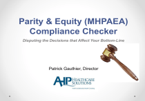 Parity & Equity (MHPAEA) Compliance Checker Disputing the Decisions that Affect Your Bottom-Line Patrick Gauthier, Director Parity & Equity • Federal parity law applies only to insurers who choose to cover mental health and substance use disorder services, and then it only applies to certain plan types. • However, federal parity law does not mandate the coverage of mental health and substance use disorder services. Challenges As patient presents at point of registration, correlating their coverage and benefits with plan types required to comply. Mental Health Parity and Addiction Equity Act of 2008 • Federal mental health parity law addresses the terms under which mental health and substance use disorder services are covered in comparison with medical and surgical services in those plans that choose to offer coverage of these services. • Federal law requires parity in o o o o annual and aggregate lifetime limits, treatment limitations (days, visits), financial requirements (co-pay and deductible), and in- and out-of-network covered benefits. Challenges • Determining: Annual and lifetime maximum across all medical coverage Determining whether or not there is a separate behavioral health deductible Identifying whether or not the plan has differential co-pay in place for primary care vs. behavioral health Determining how day and visit limitations are applied in medical conditions and discerning whether those limits in cases of behavioral health are applied more stringently Determining scope and nature of out-of-network benefits where primary care and behavioral healthcare are concerned MHPAEA and Non-Quantifiable Treatment Limitations Non-quantitative treatment limitations include medical management, network inclusion process and standards, step therapy (fail first), and establishment of Usual, Customary and Reasonable rates of reimbursement. Processes, strategies, evidentiary standards, or other factors used in applying the non-quantitative treatment limitations to MH/SUD benefits to MH/SUD in a classification are comparable to and applied no more stringently than what is applied to medical/surgical benefits except to the extent that recognized clinically appropriate standards of care may permit a difference. Challenges • Determining: Whether or not network admission requirements are more stringent for Behavioral health providers than they are for primary care Determining whether or not a fail-first policy (at a lower level of care) is in place Identifying whether or not the plan uses discriminatory methods for establishing rates of reimbursement Determining whether or not medical necessity guidelines are applied more stringently Gaining access to standards and justification used when UM staff reach an adverse determination Parity & Equity • Applies to both large fully insured and large selfinsured plans. • In addition, it applies to Medicaid managed care plans and to Children’s Health Insurance Program (CHIP) plans. • The ACA builds on federal parity law by expanding its applicability to a number of additional plan types. Challenges • Coverage: CHIP? Large fully-insured? Large self-insured? Large self-insured though exempt by virtue of being a nonfederal public employee plan? Small group? Individual policy? Medicaid traditional fee-for-service? Medicare? Illinois Parity Law • ASAM o The new law requires medical necessity determinations to be made in accordance with appropriate patient placement criteria established by the American Society of Addiction Medicine (ASAM). • DHS Providers o The Illinois law specifically identifies, by name, community-based providers, licensed or certified through the Illinois Department of Human Services in accordance with the Illinois Alcoholism and other Drug Abuse and Dependency Act. Illinois Parity Law • Residential/Sub-Acute Inpatient - Additionally, in a significant victory for Illinoisans and their providers, the law identifies residential/sub-acute inpatient treatment services under the definition of inpatient treatment, requiring parity in coverage. Affordable Care Act (ACA) and Parity • Specifically, the ACA includes provisions that require (1) compliance with federal parity law by certain plans and (2) the coverage of mental health and substance use disorder services by certain plans. ACA and Parity • The ACA does not change the federal mental health requirements at all. However, it extends applicability of these requirements to three new plan types: o (1) Qualified Health Plans (QHPs, offered through the state Exchanges); o (2) plans offered through the individual market; and o (3) Medicaid benchmark and benchmark equivalent plans that are not managed care plans. ACA and Essential Health Benefits (EHB) • The ACA also requires certain plans to offer coverage of mental health and substance use disorder services, by requiring these plan types to cover the Essential Health Benefits (EHB), which are defined to include mental health and substance use disorder services. EHB • The ACA does not require that specific mental health and substance use disorder services be included as part of the EHB. • The specific services and items that will be a part of the EHB will be determined through the rulemaking process at the state level with federal guidance. EHB • ACA Section 1302(b) requires the essential health benefits to include, at a minimum, services and items in the following 10 categories: (1) Ambulatory patient services. (2) Emergency services. (3) Hospitalization. (4) Maternity and newborn care. (5) Mental health and substance use disorder services, including behavioral health treatment. (6) Prescription drugs. (7) Rehabilitative and habilitative services and devices. (8) Laboratory services. (9) Preventive and wellness services and chronic disease management. (10) Pediatric services, including oral and vision care. Parity in Exchanges • The ACA requires the establishment of Exchanges, health insurance marketplace