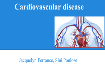 Cardiovascular disease Jacquelyn Ferrance, Sini Poulose Definition Cardiovascular disease is caused by disorders of the heart and blood vessels, and includes coronary heart disease (heart attacks), cerebrovascular disease (stroke), raised blood pressure (hypertension), peripheral artery disease, rheumatic heart disease, congenital heart disease and heart failure (WHO) Cardiovascular disease is a disease of the heart and diseases of the blood vessel system within a person's entire body such as the brain, legs, and lungs. In the name Cardiovascular, "Cardio" refers to the heart and "Vascular" refers to the blood vessel system. Cardiovascular Disease causes dysfunctional conditions of the heart, arteries, and veins that supply oxygen to vital lifesustaining areas of the body like the brain, the heart, and other organs. Oxygen has to carry to tissues and organs in order for a person to maintaining life. What are cardiovascular diseases? Cardiovascular diseases (CVDs) are a group of disorders of the heart and blood vessels and they include: coronary heart disease – disease of the blood vessels supplying the heart muscle; cerebrovascular disease - disease of the blood vessels supplying the brain; peripheral arterial disease – disease of blood vessels supplying the arms and legs; rheumatic heart disease – damage to the heart muscle and heart valves from rheumatic fever, caused by streptococcal bacteria; congenital heart disease - malformations of heart structure existing at birth; deep vein thrombosis and pulmonary embolism – blood clots in the leg veins, which can dislodge and move to the heart and lungs. • • • • • • CVD Facts KEY FACTS • • • • • • CVDs are the number one cause of death globally: more people die annually from CVDs than from any other cause . An estimated 17.3 million people died from CVDs in 2008, representing 30% of all global deaths. Of these deaths, an estimated 7.3 million were due to coronary heart disease and 6.2 million were due to stroke . Low- and middle-income countries are disproportionately affected: over 80% of CVD deaths take place in lowand middle-income countries and occur almost equally in men and women . The number of people who die from CVDs, mainly from heart disease and stroke, will increase to reach 23.3. million by 2030 . CVDs are projected to remain the single leading cause of death . Most cardiovascular diseases can be prevented by addressing risk factors such as tobacco use, unhealthy diet and obesity, physical inactivity, high blood pressure, diabetes and raised lipids. 9.4 million deaths each year, or 16.5% of all deaths can be attributed to high blood pressure . This includes 51% of deaths due to strokes and 45% of deaths due to coronary heart disease. CVD risk factors (WHO) Major modifiable risk factors •High blood pressure - Major risk for heart attack and the most important risk factor for stroke. •Abnormal blood lipids High total cholesterol, LDL-cholesterol and triglyceride levels, and low levels of HDL- cholesterol increase risk of coronary heart disease and ischaemic stroke. •Tobacco use Increases risks of cardiovascular disease, especially in people who started young, and heavy smokers. Passive smoking an additional risk. •Physical inactivity :Increases risk of heart disease and stroke by 50%. Other modifiable risk factors •Low socioeconomic status (SES) Consistent inverse relationship with risk of heart disease and stroke. •Mental ill-health Depression is associated with an increased risk of coronary heart disease. •Psychosocial stress Chronic life stress, social isolation and anxiety increase the risk of heart disease and stroke. CVD risk factors(WHO) Alcohol use : One to two drinks per day may lead to a 30% reduction in heart disease, but heavy drinking damages the heart muscle Use of certain medication Some oral contraceptives and hormone replacement therapy increase risk of heart disease. • Lipoprotein(a) : Increases risk of heart attacks especially in presence of high LDL-cholesterol. Left ventricular hypertrophy (LVH) : A powerful marker of cardiovascular death. Non-modifiable risk factors •Advancing age : Most powerful independent risk factor for cardiovascular disease; risk of stroke doubles every decade after age 55. •Heredity or family history : Increased risk if a first-degree blood relative has had coronary heart disease or stroke before the age of 55 years (for a male relative) or 65 years (for a female relative). •Gender : Higher rates of coronary heart disease among men compared with women (premenopausal age); risk of stroke is similar for men and women. •Ethnicity or race: Increased stroke noted for Blacks, some Hispanic Americans, Chinese, and Japanese populations. Increased cardiovascular disease deaths noted for South Asians and American Blacks in comparison with Whites. CVD risk factors (WHO) Novel risk factors •Excess homocysteine in blood (is a non-protein α-amino acid) High levels may be associated with an increase in cardiovascular risk. •Inflammation Several inflammatory markers are associated with increased cardiovascular risk, e.g. elevated C-reactive protein (CRP). •Abnormal blood coagulation Elevated blood levels of fibrinogen and other markers of blood clotting increase the risk of cardiovascular complications. CVD risk factors (WHO) Overview of CVD Globally 17 million of people die of CVDs, particularly heart attacks and strokes Heart Disease and Statistics Heart Disease and Statistics Heart Disease and Statistics Heart Disease and Statistics Coronary Heart Disease Prevalence Heart Disease and Statistics Heart Disease and Statistics Acute Myocardial Infarction Prevalence Heart Disease and Statistics Heart Disease and Statistics CVD Mortality Definition of cardiovascular health In order to accurately measure Americans’ cardiovascular health and monitor progress toward the 2020 goal, the American Heart Association for the first time defined “ide