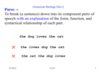 Example: LR(1) parser Left to right scanning