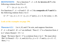 DEFINITIONS For a function F : A B, the inverse of F is the