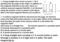 1- A long straight wire carries current I = 10 A pointing into the page at