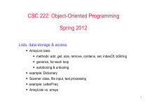 methods: add, get, size, remove, contains, set, indexOf, toString