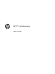 HP Z1 Workstation User Guide Copyright Information Warranty Trademark Credits First Edition: March 2012 Hewlett-Packard Company shall not be liable for technical or editorial errors or omissions contained herein or for incidental or consequential damages in connection with the furnishing, performance, or use of this material. The information in this document is provided “as is” without warranty of any kind, including, but not limited to, the implied warranties of merchantability and fitness for a particular purpose, and is subject to change without notice. The warranties for HP products are set forth in the express limited warranty statements accompanying such products. The HP logo is a trademark of HewlettPackard Company in the U.S. and other countries. Part number: 685866-001 Nothing herein should be construed as constituting an additional warranty. This document contains proprietary information that is protected by copyright. No part of this document may be photocopied, reproduced, or translated to another language without the prior written consent of Hewlett-Packard Company. Microsoft and Windows are U.S. registered trademarks of Microsoft Corporation. Intel is a trademark of Intel Corporation in the U.S. and other countries and is used under license. Acrobat is a trademark of Adobe Systems Incorporated. ENERGY STAR is a U.S. registered mark of the United States Environmental Protection Agency. About this guide This guide provides setup and basic troubleshooting information for the HP Z1 Workstation. It includes these topics: Guide topics Locating HP resources on page 1 HP Z1 Workstation features on page 6 Setting up and using the workstation on page 10 Setting up and restoring Microsoft Windows on page 21 Setting up and restoring Linux on page 23 Updating the workstation on page 28 Diagnostics and Minor Troubleshooting on page 30 Routine Care on page 36 TIP: If you do not find what you are looking for in this guide: — Find technical details in the HP Z1 Workstation Maintenance and Service Guide at http://www.hp.com/support/workstation_manuals. — View removal and replacement videos at http://www.hp.com/go/sml. — See additional information on your workstation at http://www.hp.com/go/workstations. iii iv About this guide Table of contents 1 Locating HP resources ....................................................................................................... 1 Product information .................................................................................................................. 2 Support ................................................................................................................................... 3 Product documentation ............................................................................................................. 4 Product diagnostics .................................................................................................................. 4 Product updates ....................................................................................................................... 5 2 HP Z1 Workstation features ............................................................................................. 6 Components ............................................................................................................................ 6 Front and bottom components ..................................................................................... 6 Side components ....................................................................................................... 7 Rear components ...................................................................................................... 8 Product specifications ............................................................................................................... 9 Physical characteristics .............................................................................................. 9 Environmental specifications ....................................................................................... 9 3 Setting up and using the workstation ............................................................................. 10 Setting up the workstation ....................................................................................................... 10 Location and ventilation ........................................................................................... 10 Setup procedure ..................................................................................................... 11 Connecting to the Internet ......................................................................................... 15 Enabling Bluetooth Devices ....................................................................................... 15 Installing the USB keyboard/mouse receiver ............................................................... 16 Display options ...................................................................................................................... 18 Adding an external monitor ...................................................................................... 18 Customizing the monitor display ............................................................................... 18 Using the workstation as a monitor ............................................................................ 19 Using the Webcam ................................................................................................................ 20 Installing optional components ................................................................................................. 20 Security ................................................................................................................................ 20 Product recycling ................................................................................................................... 20 4 Setting up and res