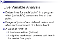 Live-in(BB) U= Live-out(BB) – written(BB)