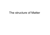 The structure of Matter Element , Compound, and Mixture compound compound Element Mixture : MgF2 in gasoline, water-gasoline, suger in water Element + compound 1 Compound 2 Chemical reaction Heterogeneous mixture Homogenous mixture No chemical reaction Persamaan reaksi kimia Zn + S C4H10 + 13 O2 ZnS 8 CO2 + 10 H2O Struktur atom 2500 tahun yang lalu : atom = “not cut” Dalton atomic teory: 1. Materi terdiri atas atom atom 2. Atom merupakan bagian terkecil dari materi dan tidak dapat terbelah lagi 3. Atom dari suatu element memiliki massa dan sifat sama 4. Atom dari element berbeda memiliki massa dan sifat berbeda 5. Atom atom dapat bergabung membentuk senyawa dengan rasio massa tertentu Bagaimana cara mengetahui massa atom saat periode teori atom Dalton? Struktur Atom modern Penemuan elektron • Menurut Dalton dan ilmuwan sebelumnya, atom tak terbagi dan merupakan komponen mikroskopik utama materi. Jadi, tidak ada seorangpun ilmuwan sebelum abad 19 menganggap atom memiliki struktur, atau dengan kata lain, atom juga memiliki komponen yang lebih kecil. • Keyakinan bahwa atom tak terbagi mulai goyah akibat perkembangan pengetahuan hubungan materi dan kelistrikan yang berkembang lebih lanjut. Kemajuan pemahaman hubungan materi dan listrik. • Faraday jumlah zat yang dihasilkan di elektroda-elektroda saat elektrolisis (perubahan kimia ketika arus listrik melewat larutan elektrolit) sebanding dengan jumlah arus listrik. Jumlah listrik yang diperlukan untuk menghasilkan 1 mol zat di elektroda adalah tetap (96,500 C).Hubungan ini dirangkumkan sebagai Hukum Elektrolisis Faraday. • Irish George Johnstone Stoney (1826-1911) memiliki wawasan sehingga mengenali pentingnya hukum Faraday pada struktur materi; ia menyimpulkan bahwa terdapat satuan dasar dalam elektrolisis, dengan kata lain ada analog atom untuk kelistrikan. Ia memberi nama elektron. • Berapa muatan 1 elektron? Percobaan tabung vakum Plücker (1801-1868). Bila kation mengenai anoda dan diberikan beda potensial yang tinggi pada tekanan rendah (lebih rendah dari 10–2 - 10–4 Torr), gas dalam tabung, walaupun merupakan insulator, menjadi penghantar dan memancarkan cahaya. Bila vakumnya ditingkatkan, dindingnya mulai menjadi mengkilap, memancarkan cahaya fluoresensi Beberapa partikel dipancarkan dari katoda. Ia memberi nama sinar katoda pada partikel yang belum teridentifikasi ini • Fisikawan Inggris Joseph John Thomson (1856-1940) menunjukkan bahwa partikel ini bermuatan negatif. • Fisikawan Amerika Robert Andrew Millikan (1868-1953) berhasil membuktikan dengan percobaan yang cerdas adanya partikel kelistrikan ini. Percobaan yang disebut dengan percobaan tetes minyak Millikan. Tetesan minyak dalam tabung jatuh akibat pengaruh gravitasi. Bila tetesan minyak memiliki muatan listrik, gerakannya dapat diatur dengan melawan gravitasi dengan diberikan medan listrik. Gerakan gabungan ini dapat dianalisis dengan fisika klasik. Millikan menunjukkan dengan percobaan ini bahwa muatan tetesan minyak (elektron) selalu merupaka kelipatan 1,6x10–19 C. Muatan elektron =1,6 x 10–19 C. Ratio muatan/massa (Thomson ) = 1,76 x108 C/g), • Latihan 1. Perhitungan massa elektron. Hitung massa elektron dengan menggunakan nilai yang didapat Millikan dan Thomson. Jawab: Anda dapat memperoleh penyelesaian dengan mensubstitusikan nilai yang didapat Millikan pada hubungan: muatan/massa = 1,76 x 108 (C g–1). Maka, m = e/(1,76 x 108 C g–1) = 1,6 x 10–19 C/(1,76 x 108C g–1) = 9,1 x 10–28 g. Muatan elektron =1,6 x 10–19 C. Ratio muatan/massa (Thomson ) = 1,76 x108 C/g), Latihan 2. Rasio massa elektron dan atom hidrogen. Hitung rasio massa elektron dan atom hidrogen! Jawab: Massa mH atom hidrogen atom adalah: mH = 1 g/6 x 1023 = 1,67 x 10–24g. Jadi, me : mH = 9,1 x 10–28g : 1,67 x10–24g = 1 : 1,83 x 103. Sangat menakjubkan bahwa massa elektron sangat kecil. Bahkan atom yang paling ringanpun, hidrogen, sekitar 2000 kali lebih berat dari massa elektron. Model atom Mengukur ukuran atom Latihan 3. Volume satu molekul air Dengan menganggap molekul air berbentuk kubus, hitung panjang sisi kubusnya. Dengan menggunakan nilai yang didapat, perkirakan ukuran kira-kira satu atom (nyatakan dengan notasi saintifik 10x). Jawab: Volume 1 mol air sekitra 18 cm3. Jadi volume 1 molekul air: v = 18 cm3/6 x 1023 = 3x10–23 cm3 = 30 x 10–24 cm3. Panjang sisi kubus adalah (30 x 10–24)1/3 cm = 3,1 x 10–8 cm. Nilai ini mengindikasikan bahwa ukuran atom sekitar 10–8 cm. Thomson mengasumsikan bahwa atom dengan dimensi sebesar itu adalah bola seragam bermuatan positif dan elektron-elektron kecil yang bermuatan negatif tersebar di bola tersebut. Dalam kaitan ini model Thomson sering disebut dengan “model bolu kismis”, kismisnya seolah elektron dan bolunya adalah atom. • Apa kelemahan model atom Thomson? - tidak dapat menerangkan susunan muatan positif / negatif dalam sebuah atom. Teori atom Bohr • The demonstration by Thompson in 1867 that all atoms contain units of negative electric charge led to the first science-based model of the atom which envisaged the electrons being spread out uniformly throughout the spherical volume of the atom. Ernest Rutherford, a New Zealander who started out as Thompson's student at Cambridge, distrusted this "plum pudding" model (as he called it) and soon put it to rest; Rutherford's famous alpha-ray bombardment experiment (carried out, in 1909, by his students Hans Geiger and Ernest Marsden) showed that nearly all the mass of the atom is concentrated in an extremely small (and thus extremely dense) body called the nucleus. This led him to suggest the planetary model of the atom, in which the electrons revolve in orbits around the nuclear "sun". Menurut ide Rutherford, muatan positif atom terpusat di bagian pusat (dengan jarijari terhitung sekitar 10–12 cm) sementara muatan negatifnya terdispersi di seluruh ruang atom. Partikel kecil di pusat ini disebut dengan inti. Semua model atom sebelumnya sebagai ruang yang