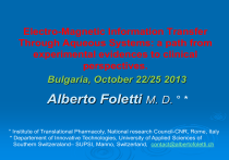 Electro-Magnetic Information Transfer Through Aqueous Systems: a path from experimental evidences to clinical perspectives. Bulgaria, October 22/25 2013 Alberto Foletti M. D. ° * ° Institute of Translational Pharmacoly, National research Council-CNR, Rome, Italy * Departement of Innovative Technologies, University of Applied Sciences of Southern Switzeraland– SUPSI, Manno, Switzerland, contact@albertofoletti.ch “The greatest challenge to any thinker is stating the problem in a way that will allow a solution” Bertrand Russell Aqueous systems not only provide the basis for the origin of life but also play a dynamic active role in the maintenance of allostasis, namely the ceaseless process aimed to keep stability through dynamic changes, in any cell and organism *. * McEwen B.S., Wingfield J.C. (2003) “The concept of allostasis in biology and biomedicine.”, Horm. Behav.,43(1):2-15. Interestingly aqueous systems possess not only the longtime acknowledged biochemical properties but also some recently disclosed biophysical features providing a completely new framework to biology and medicine *. * Foletti A., Lisi A., Ledda M., De Carlo F., Grimaldi S. (2009) “Cellular ELF signals as a possible tool in informative medicine.”, Electromagn. Biol. Med., 28(1): 71-79. Dynamic electro magnetic fields are endogenously generated as biophysical correlates of biochemical activities into cells and tissues *. *Burr H.S, Northrop F.S.C. (1939) “Evidence for the existence of an electro-dynamic field in living organisms.”, Proc Natl Acad Sci USA, 25(6): 284-288. Cifra M., Fields J.Z., Farhadi A. (2010) “Electromagnetic cellular interaction.”, Prog Biophys Mol Biol., 105(3): 223-246. Rossi C., Foletti A., Magnani A., Lamponi S. (2011) “New Perspectives in Cell Comunication: Bioelectromagnetics Interactions.”, Seminar Cancer Biol., 21(3): 207-214. These electro-dynamic fields meet the requirements to induce a coherent collective behavior of water molecules and other components of the nearest aqueous systems and other cell components and is self trapped in form of electro-solitons that contribute to maintain the dynamic stability of the system without loose of energy or information *. *Brizhik L.S., Del Giudice E., Popp F.A., Maric-Oeler W., Schlebusch K. P. (2009) “On the dynamics of self-organization in living organisms.”, Electromagn. Biol. Med., 28(1): 28-40. At ambient conditions our traditional view of water is an homogeneous distribution of tetrahedral structure hydrogen bonded. In spite of this very simple description a more complex picture arise from recent reports identifying the presence, even at ambient condition, of inhomogeneous structures that fit the concept of “coherence domains” in agreement with Quantum Electrodynamic Theory (QED) *. *Preparata G. (2000) “QED and medicine.”, Riv Biol., 93 : 467-512. Del Giudice E., Tedeschi A. (2009) “Water and autocatalysis in living matter.”, Electomagn Biol Med., 28(1): 46-52. Consequently aqueous system, such ones enfolded in livings, could play an additional role in modulating biological functions by generating dissipative structure providing basis for processing, storing and retrieving information mediated by electro-magnetic signals*. *Marchettini N., Del Giudice E., Voeikov V., Tiezzi E. (2010) “Water: a medium in where dissipative structures are produced by a coherent dynamics.”, J. Theor. Biol., 265(4): 511-516. Furthermore any pattern of electro-magnetic signals, both endogenous and exogenous, when became resonant with some of the coherent domains of water, can induce a dipole moments re-patterning inducing them to oscillate coherently each other generating a new phase correlation described as a super-coherent, a true fourth phase of water *. * Del Giudice E., Elia V., Tedeschi A. (2009) “The role of water in the living organisms.”, Neural Network World, 19(4): 355-360. Therefore external patterns of electro-magnetic signals can be stored, translated and transferred by the water structure of the aqueous systems to biological targets selectively modulating their activity both at cellular and systemic level *. * Jerman I., Berden M., Ruźic R. (1996) “Biological influence of ultraweak supposedly EM radiation from organisms mediated through water.”, Electro and Magnetobiology., 15(3): 229-244. Kreisl P. (1998) “Test on the transduction of acetic acid information via an electronic amplifier.”, Acta Medica Empirica, 47(3): 17-24. “To the powerful theories of chemistry and physics must be added a late arrival : a theory of information. Nature must be interpreted as matter, energy and information.” Jeremy Campbell Endler P.C., Citro M., Pongratz W., Smith C.W., Vinattieri C., Senekowitsch F. (1995) “Transfer of molecular information using a bioresonance instrument (BICOM) in amphibian trial.”, Acta Medica Empirica, 44(3): 1-16. Jerman I., Ruźic R., Krašovec R., Škarja M., Mogilnicki L. (2005) “Electrical transfer of molecule information into water, its storage, and bioeffects on plants and bacteria.”, Electromagn Biol Med., 24(3): 341353. Thomas Y., Schiff M., Belkadi L., Jurgens P., Kahhak L., Benveniste J., (2000) “Activation of human neutrophils by electronically transmitted phorbolmyristate acetate.”, Medical Hypotheses., 54: 33-39. Smith C.W. (2004) “Quanta and coherence effects in water and living systems.”, J Altern Complement Med.,10(1): 69-78. Montagnier L., Aissa J., Ferris S., Montagnier J.-L., Lavallée C. (2009) “Electromagnetic signals are produced by aqueous nanostructures derived from bacterial DNA sequences.”, Interdiscip. Sci., 1(2): 81-90. BRT Montagnier L., Aissa J., Del Giudice E., Lavallée C., Tedeschi A., Vitello G. (2011) “DNA waves and water.” J Phys: Conf Ser., 306: 012007. Heredia-Rojas J.A., Torres-Flores A.C., Rodriguez-De la Fuente A.o., Mata-Cardenas B.D., RodriguezFlores L.E., Barron-Gonzales M.P., Torres-Pantoja A.C., Alcocer-Gonzal
