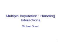Multiple Imputation : Handling Interactions Michael Spratt 1 Introduction • Missing data is considerable problem • Complete case analysis will generally lead to systematic bias • Have to make some assumption – Most commonly used is Missing at Random (MAR) – MNAR uses different assumptions • In this talk we are discussing analysis when MAR assumption is made 2 Introduction : MAR • In MAR, the probability of being missing does not depend on the missing data itself, given the observed data and the model parameters – Unlike MNAR analysis, we do not have to explicitly the model missingness mechanism 3 Introduction : MAR and multiple imputation • Most common approach : perform imputation of missing data and save multiple imputed datasets – Each imputed dataset differs (slightly) due to stochastic nature of imputation • Then carry out substantive analysis on each of the imputed datasets • Then combine the individual results (using Rubin’s Rules) to obtain combined imputation estimates and standard errors 4 MICE/ICE for imputation assuming MAR • MICE : Multiple Imputation using Chained Equations has been widely used for imputation – Sometimes called FCS (fully conditional specification) – For general missingness patterns (does not not have to assume monotone missingness) • Implemented in – – – – • MICE package in R (van Buuren et. al.) ICE command in Stata (Royston) IVEWARE (Raghunathan et. al.) Potentially task-specific versions be written in other programs e.g. WinBUGS Ref : Multiple imputation of missing blood pressure covariates in survival analysis. Van Buuren, Boshuizen, Knook. Statistics in Medicine 1999; 18(6): 681–94. 5 MICE/ICE for imputation assuming MAR • X1, X2, X3 …Xn partially observed • Zobs represents set of fully observed variables Chained equations are : • X1 ~ f(X2, X3 , X4 … Xn, Zobs) • X2 ~ f(X1, X3 , X4 … Xn, Zobs) • X3 ~ f(X1, X2 , X4 … Xn, Zobs) etc. • Comparable to Gibbs Sampler • Much shorter chains which on termination produce an imputed dataset 6 Interactions in the Analysis Model • A useful practical guide to using imputation to perform analysis in the presence of missing data are • Multiple imputation: current perspectives (Kenward and Carpenter Statistical Methods in Medical Rearch16: 199– 218) • Multiple imputation for missing data in epidemiological and clinical research: potential and pitfalls (Sterne, White, Carpenter et. al. BMJ 2009;338:b2393) also contains useful guidance • The imputation model should be at least as rich as the substantive model – The imputation model should preserve the structure of the data 7 MICE/ICE for imputation • For most datasets where distributional assumptions are met, MICE/ICE has been shown in practice to work well for MAR data • More care is needed when models contain structures such as interactions, multi-level, nonlinearity etc. In particular the structure of the substantive model should be reflected in the imputation model • This talk focuses on interactions 8 Why omitting interactions in the imputation may cause problems • Take as an example 3 binary variables X, Y, Z • We are interested in a substantive analysis in the presence of missing data of the logistic regression of Y on X and Z with an interaction • logit(P(Y=1| X, Z)) = b0+ bxx + bzz + bxzx.z • We initially have a full [X,Y,Z] dataset, but it then becomes subject to missingness (MAR mechanisms) • We would like the parameter estimates after MAR followed by imputation occurs to be the same as the full data estimates 9 Why omitting interactions in the imputation may cause problems • The coefficients are the same as the coefficients of the corresponding log-linear model – logistic : • logit(Y) = b0+ bxx + bzz + bxzx.z – log-linear • log(mxyz) = m0+ mxx + myy + mzz + mxyx.y + mxzx.z + myzy.z + mxyzx.y.z – Examining the bias of bx is equivalent to examining the bias of mxy; same for bz and myz; and for bxz and mxyz 10 Why omitting interactions in the imputation may cause problems • Omitting interactions terms in the full conditional models will lead to interactions in the log-linear model being underestimated and hence P(X, Y, Z) being incorrectly estimated • This can also be seen by looking at the number of parameter estimates needed – If just X is subject to missingness, we need to be able to estimate P(X | Y,Z) P(Y, Z) • 4 parameter estimates needed for P(X | Y, Z) • This cannot be done with chained equation without interaction as there are only 3 free parameters X = a+ by Y + bz z – If X and Y are subject to missingess, we need to be able to estimate P(X, Y | Z) P(Z) • 8 parameter estimates in general needed for P(X, Y | Z) • This cannot be done with chained equations without interaction x = ax+ bxy y + bxz z and y = ay + byx x + byz z as there are only 6 free parameters 11 Passive Imputation • Imputation interactions are needed. Both the Stata program ICE (and also the R MICE package) support passive imputation • The interaction term is recalculated from the main effects after every mice cycle and can then be made use of in the subsequent chained equations in the cycle for the imputation of other variable(s) – Other possible approaches : – Von Hippel “How to impute interactions, squares and other transformed variables”, Sociological Methodology 39:265-291 2009 is a less established alternative to passive imputation – It is also worth noting that where a categorical variable is fully observed an alternative method of imputation is to split it by values of the fully observed variable and separately impute subsets of data 12 Simulation Structure 1. 2. 3. 4. We created a [X,Z] dataset We created Y stochastically given X and Z We stochastically created missingness (MAR) in 1, 2 or 3 variables Using a number of imputation models we did the imputation and performed the substantive analysis Steps 2-4 were repeated 100 times and parameter