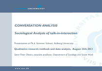 • The social institutions in talk-in-interaction. ‘Applied’ CA