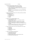 Gastrointestinal MCQ’s Di Flood 1. Regarding patients with upper GI bleeds which is incorrect? a. Use of NSAIDs doubles the risk for an upper GI bleed b. Urea will increase relative to creatinine in acute bleed c. Presence of fresh blood on aspiration of NG tube increases mortality as opposed to a clear aspirate. d. Active bleeding seen at endoscopy has a 10% risk of rebleeding after treatment. e. Most deaths occur from decompensation of other organ systems rather than exsanguination. 2. Which of the following therapies is proven to reduce mortality and morbidity in bleeding peptic ulcers? a. Endoscopic procedures b. H2 antagonists c. Proton pump inhibitors d. Octreotide e. Antacids 3. Which is not true of bleeding oesophageal varices? a. Mortality approaches 25-40% b. Use of octreotide IV is as effective as sclerotherapy controlling bleeding in 74-92% of cases. c. Sclerotherapy has a high rate of complications (40%) including perforation, aspiration, pyrexia, chest pain, ulcers and strictures. d. Endoscopic variceal ligation is as effective as sclerotherapy with fewer side effects. e. Use of the sengstaken-blackmore tube is effective in controlling severe bleeding, is easy to insert and has almost no complications. 4. Which is the most common cause of lower GI bleed under 50 years of age? a. Anal fissures b. Benign polyps c. Haemorrhoids d. Inflammatory bowel disease e. Diverticulosis 5. Which is not a characteristic of diverticulosis? a. Acquired defects in bowel wall b. More common in distal colon c. Bleeding usually intermittent d. Significant bleeding usually arises from right side of colon e. Occur at point of entry nutrient vessel 1=D 2=A 3=E 4=C 5=C 6. A 55 year old woman presents with intermittent bright red PR bleeding. On examination she is stable, and PR shows small external haemorrhoid. What is appropriate treatment for this lady? a. Reassure, prescribe treatment for haemorrhoids b. Refer to surgeons for elective haemorrhoidectomy c. Prescribe treatment for haemorrhoids, and arrange outpatient colonoscopy with surgical follow-up. d. No further treatment necessary. e. Admit to hospital for colonoscopy or double contrast barium enema. 7. Which is not a predisposing factor for GORD? a. High fatty food intake b. Cholinergic drugs c. Caffeine d. Nicotine e. Gastric outlet obstruction 8. Which is the most common cause of oesophageal perforation? a. Iatrogenic causes b. Trauma c. Boerhaave’s syndrome d. Foreign body e. Tumour 9. Which is incorrect of swallowed foreign bodies? a. 80% occur in children b. 97% of adults with distal meat impactions have pathological conditions so all need Barium swallow studies. c. The most common area for FB’s to be found in children is at the cricopharyngeal narrowing (C6). d. Glucagon is used to relax smooth muscle but is contraindicated in phaeochromocytoma. e. Carbonated drinks can be used safely in upper oesophageal obstructions to try and dilate oesophagus to allow FB to pass. 10. Which of the following FB’s needs to be removed as an emergency? a. 50 cent coin in the stomach b. 50 cent coin in the oesophagus c. lithium button battery in stomach d. lithium button battery in oesophagus e. 5 grams of cocaine in condom sitting in small intestine 6=C 7=B 8=A 9=E 10=D 11. Which is the most common cause of peptic ulcer disease of the following? a. Smoking b. NSAID’s c. Zollinger-Ellison syndrome d. Ethanol excess e. Family hx of PUD 12. Which is not true of H.pylori infection? a. 80% of patients with chronic infection will develop ulcers b. the most common cause of peptic ulcer disease c. it is a risk factor for adenocarcinoma of the stomach d. IgG antibody test will remain positive for up to 2 years post eradication limiting its usefulness e. The CLO test is approx 90% sensitive and 100% specific for H.pylori 13. Which is not correct regarding treatment of peptic ulcer disease/ a. Antacids are as effective as H2 antagonists in healing ulcers b. Proton pump inhibitors show more rapid healing and pain relief over 24 weeks compared to H2 antagonists. c. Colloidal bismuth subcitrate will suppress H.pylori and chelate with the base of the ulcer to aid healing. d. H.pylori eradication with omeprazole, Amoxil and metronidazole requires only one week of treatment. e. Misoprostal is indicated for prevention of NSAID induced ulcers, when treatment necessary with NSAID’s. 14. Which is the most common complication of Peptic ulcer disease? a. Perforation b. Gastric outlet obstruction c. Penetration d. Haemorrhage e. All are uncommon occurring in less than 5% of patients. 15. Which is incorrect regarding acute appendicitis? a. Between 50-75% of patients present with the classical symptoms and signs of acute appendicitis. b. Presence of a good appetite makes appendicitis unlikely c. Rovsings sign may be helpful in diagnosis especially in obese patients d. PR tenderness is seen in 90% of patients with acute appendicitis e. Vomiting prior to onset of pain makes appendicitis unlikely 11=B 12=A 13=D 14=D 15=D 16. Which is incorrect regarding investigation of acute appendicitis? a. The WCC is increased in 70-90% of patients. b. CRP will usually be normal in early appendicitis c. USS is operator dependant but has sensitivity of around 80-90%. d. USS sensitivity is lowered to around 30% in cases of gangrenous and perforated appendicitis. e. CT is the investigation of choice in children due to lower sensitivity in this group with USS. 17. Which is the least common cause of large bowel obstruction? a. Neoplasm b. Diverticulitis c. Volvulus d. Adhesions e. Faecal impaction 18. Which of the following features suggests a complete large bowel obstruction? a. Presence of multiple loops of bowel with plicae circularis on AXR b. Bilious vomiting c. Distended abdomen, with high pitched bowel sounds with normal flatus. d. Empty rectum on PR exam e. Dilated loops of bowel with haustra visible 19. What is the upper limit of normal for large bowel? a. 3cm b. 4cm c. 5cm d. 6c