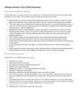 Getting Involved in Your Child's Education Why Is Parental Involvement Important? In study after study, researchers discover how important it is for parents to be actively involved in their child's education. Here are some of the findings of major research into parental involvement: When parents are involved in their children's education at home, they do better in school. And when parents are involved in school, children go farther in school — and the schools they go to are better. The family makes critical contributions to student achievement from preschool through high school. A home environment that encourages learning is more important to student achievement than income, education level or cultural background. Reading achievement is more dependent on learning activities in the home than is math or science. Reading aloud to children is the most important activity that parents can do to increase their child's chance of reading success. Talking to children about books and stories read to them also supports reading achievement. When children and parents talk regularly about school, children perform better academically. Three kinds of parental involvement at home are consistently associated with higher student achievement: actively organizing and monitoring a child's time, helping with homework and discussing school matters. The earlier that parent involvement begins in a child's educational process, the more powerful the effects. Positive results of parental involvement include improved student achievement, reduced absenteeism, improved behavior, and restored confidence among parents in their children's schooling. How Can Parents Get Involved? Involvement in your child's education can mean: Reading to your child Checking homework every night Discussing your children's progress with teachers Voting in school board elections Helping your school to set challenging academic standards Limiting TV viewing on school nights Becoming an advocate for better education in your community and state. Or, it can be as simple as asking your children, "How was school today?" But ask every day. That will send your children the clear message that their schoolwork is important to you and you expect them to learn. Some parents and families are able to be involved in their child's education in many ways. Others may only have time for one or two activities. Whatever your level of involvement, do it consistently and stick with it because you will make an important difference in your child's life. ---------------------------Related articles and research on parental involvement: Parent Involvement - Current research on parent involvement and the outcomes. (National Middle School Association, 2006) Parent Involvement in Education - Research brief addressing such questions as Is parent involvement a valuable resource for schools struggling to provide state-of-the-art instruction with diminishing funds? Does it instill pride and interest in schooling? K. Cotton & K. R. Wikelund (Northwest Regional Education Lab, 2001). National Standards for Parent/Family Involvement Programs - Standards for effective parent and family involvement programs including activities addressed by six standards. (PTA, 1997) What Research Says About Parent Involvement in Children's Education ( , 252 KB, 4pp) - Highlights the relationship between parent involvement and academic achievement and references Joyce L. Epstein's six types of parent involvement. (Michigan Department of Education, 2002) A New Wave of Evidence: The Impact of School, Family, and Community Connections on Student Achievement ( , 1.19 MB, 241pp) A. T. Henderson & K. L. Mapp. (Southwest Educational Development Laboratory, 2002) Report Conclusion. ( , 87 KB, 5pp) Summary of Research on Parent Engagement - Lists the benefits of parent engagement. The full report, A New Generation of Evidence: The Family is Critical to Student Achievement, covers 66 studies, reviews, reports, analyses, and books. Offers concrete reasons "why" and "how" educators should involve parents in their student's education. (Center for Law and Education, 1996) The Schooling Practices That Matter Most by Kathleen Cotton INTRODUCTION It is no wonder that parent involvement with the schools has become a major educational issue in the 1980s. This is an era of increasing concern about the quality of education in this country. States are taking a greater role in monitoring and maintaining academic standards. Communities are ever more watchful of the expense of public education. Local schools are concerned about continuing to provide high-quality teaching and other services with dwindling resources. And parents want assurance that their children will receive adequate preparation to lead rewarding adult lives. Is parent involvement a valuable, if largely untapped, resource for schools struggling to provide state-ofthe -art instruction with diminishing funds--a way to instill pride and interest in schooling, increase student achievement, and enhance a sense of community and commitment? Or is it one more responsibility to add to overburdened teachers and administrators--or even a threat to the autonomy and professionalism of the schools? This review of the literature on parent involvement examines these issues, focusing, in particular on the following five areas: Does parent involvement have positive effects on student achievement? If so, what type of involvement works best? What are the effects of parent involvement on other student outcomes, such as attitude, self-concept, classroom behavior, and attendance? Is parent involvement useful beyond the preschool and early elementary grades--in middle school and high school? If so, what form should it take? What is known about the uses of parent involvement in predominantly minority and/or lower income communities? What, if any, effects on children's schooling can be attributed to parent involvement in the governance of schools? DEFINITION OF PARENT INVOLVEMENT The