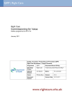 QIPP | Right Care Right Care Commissioning for Value Outline programme for 2011/12 January 2011 Quality, Innovation, Productivity and Prevention (QIPP) Right Care Workstream - Project Document Programme QIPP Document Record ID Key Sub Prog / Project Right Care <Insert Document Record ID Key> National Director Jim Easton Status For comment Owner Phil Da Silva Version V1.0 Version Date 31.01.2011 Document Control www.rightcare.nhs.uk QIPP | Right Care Introduction Right Care is one of thirteen national workstreams in the DH Quality Innovation Productivity and Prevention programme (QIPP). Right Care is an enabling programme focussed on increasing value and improving quality through addressing variation and in particular unwarranted variation, through promoting the use of health investment tools such as programme budgeting, and through sustainable systems and population planning. During 2010/11, Right Care highlighted un-warranted variation in the NHS Atlas of Variation (1) and published bespoke Health Investment Packs for all PCTs, showcasing how local commissioners can use programme budgeting techniques with a range of health investment analysis tools to highlight where quality and value can be improved (2). Right Care led on the development of a shared decision making programme for the NHS and further developed its work on Interventions of Lower Clinical Value (ILCV). This paper outlines our progress to-date and our proposed programme for the next phase of Right Care to March 2012. Reforming the NHS - the unique contribution of Right Care Unlike other QIPP programmes, which are more focussed on improving transactions in the NHS, Right Care is focussed on transformation. It acts to stimulate clinicians and commissioners to work together to increase the value derived “Value in any field must be defined around the from health investment for their populations. customer, not the supplier. Value must also be We do this through designing and measured by outputs, not inputs. Hence it is promoting tools to analyse and understand patient health results that matter, not the volume of services delivered. But results are variation and health spend and outcome, achieved at some cost. Therefore, the proper through local pilots and by promoting objective is.. the patient health outcomes knowledge transfer. relative to the total cost (inputs). Efficiency, Right Care is focussed on value but value can be increased in two ways: then, is subsumed in the concept of value. ” Source: Porter ME. (2008) What is Value in Health Care? Harvard Business School. Institute for Strategy and Competitiveness. White Paper. By doing things better and cheaper quality improvement improves outcome; productivity improvement reduces resource usage By doing the right things – that is, shifting spend from lower value interventions to higher value interventions and ensuring that patients receive appropriate interventions Doing the right things – right care, right place, right time – is the unique contribution of the Right Care programme to reforming the NHS. 1 2 http://www.rightcare.nhs.uk/atlas http://www.rightcare.nhs.ukj/resources Page 1 QIPP | Right Care The table below outlines our proposed core activities and objectives for 2011/12. These are developed further in table 5 below. Table 1: The Right Care mission for 2011/12 Workstream Objective Commissioning and Planning: allocating resources optimally Optimising allocative efficiency requires the techniques of programme budgeting and use of analysis tools to highlight variation and under performance compared to similar populations Clinical Networks and Systems of Care Health communities establish sustainable systems of care, have agreed objectives, standards and outcomes, and use health investment tools to minimise un-warranted variation and maximise value Better Value clinical practice Continuous improvement in value by clinicians shifting activity from lower value interventions to higher value interventions, using programme budgeting and marginal analysis as a framework for investment decisions Shared Decision Making Creating the right culture and environment for patients to be actively engaged in the process of decision making about their own health care Population Medicine Developing the culture for all clinicians to be responsible to the whole population they serve, not just the patients who consult them, for the management of resources invested in healthcare The Right Care Approach If value is to be increased it is essential to involve both clinicians and patient representatives. Right Care has demonstrated the ability to bring these and other parties together, to stimulate the discussion and seek necessary behaviour change to increase value. Right Care is working with colleagues at a national level through policy leads and National Clinical Directors, at regional levels through SHAs and at a local level through PCTs, GP pathfinders and providers. Through these networks we are working to support and encourage clinicians, commissioners, managers and third sector to address the challenge of reform. Right Care is an enabling programme; it does not and cannot drive change “top down”. The success of this programme ultimately relies on Right Care principles being put into practice at the front line, where a clinician meets with patients to diagnoses and decide on treatment options in discussion with the patient and Page 2 QIPP | Right Care where both are therefore making decisions which impact on resources and affect the quality and value of healthcare. A key to this approach is to design and promote tools and products and to establish networks which will facilitate clinicians and commissioners in understanding the existence and causes of variation in costs and outcomes in their own health system. Complementary to this approach is the work being led for Right Care by NHS East of England on shared decision making. Shared decision making seeks to shift the culture f