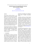 Appears in Proceedings of the Conference on Domain-Specific Languages, October 1997 Modeling Interactive 3D and Multimedia Animation with an Embedded Language Conal Elliott Microsoft Research http://www.research.microsoft.com/~conal Abstract While interactive multimedia animation is a very compelling medium, few people are able to express themselves in it. There are too many low-level details that have to do not with the desired content—e.g., shapes, appearance and behavior—but rather how to get a computer to present the content. For instance, behaviors like motion and growth are generally gradual, continuous phenomena. Moreover, many such behaviors go on simultaneously. Computers, on the other hand, cannot directly accommodate either of these basic properties, because they do their work in discrete steps rather than continuously, and they only do one thing at a time. Graphics programmers have to spend much of their effort bridging the gap between what an animation is and how to present it on a computer. We propose that this situation can be improved by a change of language, and present Fran, synthesized by complementing an existing declarative host language, Haskell, with an embedded domain-specific vocabulary for modeled animation. As demonstrated in a collection of examples, the resulting animation descriptions are not only relatively easy to write, but also highly composable. 1 Introduction Any language makes some ideas easy to express and other ideas difficult. As we will argue in this paper, today’s mainstream programming languages are illsuited for expressing multimedia animation (3D, 2D and sound), both in their basic paradigm and their vocabulary. These languages support what we call “presentation-oriented” programming, in which the essential nature of an animation, i.e., what an animation is, becomes lost in details of how to present it. We consider the question of what kind of language is suitable for capturing just the essence of an animation, and present one such language, Fran, synthesized by complementing an existing declarative “host language”, Haskell, with an embedded domain-specific vocabulary. We propose an alternative to “presentation-oriented” programming, namely “modeling”, in which a model of the animation is described, leaving presentation as a separate task, to be done automatically. This idea of modeling has been applied fruitfully in the area of nonanimated 3D graphics as discussed below, and is now widely, though not universally, accepted. Our contribution is to extend this idea in a uniform style to encompass as well sound and 2D images, and across the time dimension, in order to model animations over a broad range of types. For brevity, this paper concentrates on 3D animation, but it is really the uniform integration of different types that gives rise to great expressive power. (See Elliott and Hudak [1997] for 2D examples.) While imperative programming languages are suited to presentation-oriented programming, the modeling approach requires a different kind of language. Unfortunately, bringing a useful new language into being is quite a daunting task, requiring design of semantics and syntax, implementation of compilers and environment tools, and writing of educational material. However, as Peter Landin taught us thirty years ago, we can logically separate a language into (a) a domainspecific vocabulary and (b) a domain-independent way of composing more complex things from simpler ones. In other words, a language is a combination of a “host language” and a “domain-specific embedded language” (DSEL). By reusing the same host language for several different vocabularies, we can amortize the cost of its creation over more uses. In fact, unlike thirty years ago, we are now fortunate enough to have various candidate languages from which to choose. In this paper, we examine various features of a candidate host language to see which are helpful and which are not 1 Conal Elliott Appears in Proceedings of the Conference on Domain-Specific Languages, October 1997 helpful for modeled animation. We find that Haskell is a fairly good fit, requiring only a few compromises. The rest of this paper is organized as follows. Section 2 starts with a few examples of modeled animations. Section 3 introduces the notions of presentation and modeling for non-animated 3D graphics, and looks at some concrete benefits. Section 4 extends the idea and benefits of modeling to a variety of types besides 3D geometry, including sound and 2D images, and across the time dimension. Section 5 considers the pragmatics of creating a new domain specific language (DSL), and motivates the DSEL approach. Section 6 examines the usefulness of host language features in some detail. The remainder of the paper looks at related work and describes some directions for future work on modeled animation. 2 Examples In this section we present a handful of modeled animations, in order to make later discussion more concrete. 2.1 Static models To start, we import a simple 3D model of a sphere from “X file” format. sphere :: GeometryB sphere :: GeometryB sphere = importX "sphere1.x" The type GeometryB represents 3D geometry animations. (This “animation” happens to be a “static”, i.e., not time-varying, one.) Similarly, we import a teapot model. However, the teapot is in an awkward orientation, so we adjust it after importing, rotating around the X axis by an angle of -/2: teapot :: GeometryB teapot = rotate3 xVector3 (-pi/2) **% importX "tpot2.x" Note that in Haskell, function application binds more tightly than all infix operators. Here are the types of the modeling vocabulary we used: xVector3 :: Vector3B rotate3 :: Vector3B -> RealB -> Transform3B (**%) :: Transform3B -> GeometryB -> GeometryB The constant xVector3 is the unit vector pointing in the positive X direction. rotate3 takes an axis vector and a number and yields a 3D transform. The operator **% applies a 3D tra