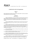 Developed by Simone P. Joyaux, ACFRE • www.simonejoyaux.com SAMPLE BYLAWS XYZ Organization ARTICLE I Purpose State your general purpose in this section. (Tip: Do not reprint your mission statement – because if you change your mission statement then you need to amend the bylaws.) ARTICLE II Board of Directors Section 2.1. General Powers: As steward of the public trust, the Board of Directors (“the Board”) shall be responsible for governance, the ongoing process of due diligence to assure the health and effectiveness of the corporation. The Board shall have the power to govern the affairs and property of the corporation, in keeping with policies it establishes that define the Board’s scope of authority and limitations. Section 2.2. Number of Directors: The Board shall consist of at least XX and no more than XX members, as determined from time to time by the Board. All Directors shall have identical rights and responsibilities. Section 2.3. Tenure: Directors shall serve a term of three (3) years from the date of their election. A full three-year term shall be considered to have been served upon the passage of three (3) annual meetings. Directors shall take office immediately following the close of the annual meeting at which they are elected. No Director shall serve more than two (2) consecutive three-year terms. Fulfilling an incomplete term is not considered part of the term limit. Directors shall serve staggered terms to balance continuity with new perspective. Section 2.4. Board Members: Members of the Board of Directors shall adhere to all policies and procedures established by the Board. Section 2.5. Composition of the Board of Directors: Board members shall be sought who reflect the qualifications and diversity determined by the Board in its policies. Section 2.6. Nomination and Election: The Committee on Directorship shall present a slate of Board members for election by the Board at the annual meeting. The newly elected Board members shall take office immediately following the close of the meeting at which they are elected. Section 2.7. Vacancies: Any vacancy occurring in the Board of Directors and any position to be filled by reason of an increase in the number of Directors may be filled, upon recommendation of a qualified candidate by the Committee on Directorship, by the affirmative vote of the majority of the Developed by Simone P. Joyaux • www.simonejoyaux.com • spjoyaux@aol.com • 2000; 06; 07 Board. A Director elected to fill the vacancy shall be elected for the unexpired term of his/her predecessor in office. Section 2.8. Resignation: A Director may resign at any time by filing a written resignation with the President of the Board. Section 2.9. Removal: The Board may remove any Officer or Director for cause by two-thirds (2/3) vote of all Directors then in office, at any regular or special meeting of the Board, provided that a statement of the reason or reasons shall have been mailed by Registered Mail to the Officer or Director proposed for removal at least thirty (30) days before any final action is taken by the Board. This statement shall be accompanied by a notice of the time when, and the place where, the Board is to take action on the removal. The Officer or Director shall be given an opportunity to be heard and the matter considered by the Board at the time and place mentioned in the notice. ARTICLE III Officers of the Board of Directors1 Section 3.1. Positions: There shall be four (4) elected officers of the Board of Directors: President, Vice President, Secretary, and Treasurer. The roles and qualifications of these Officers shall be determined by the Board in its policies. Section 3.2. Nomination and Election: The Governance Committee shall present a slate of Officers to the Board of Directors. The nominated Officers shall be drawn from among the members of the Board of Directors. The election of Officers shall be held at the annual meeting of the Board, immediately following the election of the Board members. The newly elected Officers shall take office immediately following the close of the meeting at which they are elected and the term of office shall be one year. Section 3.3. Tenure: The term for each Officer shall be the one-year period commencing with the date of the annual meeting of the Board of Directors. No single individual may be elected for more than 4 consecutive one-year terms in any single office. Section 3.4. Immediate Past President [or Chair]: In the event that the term limit of the individual who is Immediate Past President shall have expired, the Board of Directors shall have the authority to retain this individual on the Board, in the position of Immediate Past President, until such a time as another individual holds said office. Some organizations use the terms “Chair” and “Vice Chair” instead of “President” and “Vice President.” Some organizations also include the position of Immediate Past President or Immediate Past Chair. Some organizations have both a Chair, the volunteer leader of the board – and a President/CEO, the chief executive – hired – of the corporation. Oftentimes, the President/CEO is a voting board member, by virtue of position. However, the President/CEO is not the chair of the board. The President / CEO would not be an elected officer and so section 3.3 below would not apply. I recommend use of “chair” and “vice chair” for officers because of possible confusion regarding “president” as the paid staff leader. And by the way, the volunteer leader of the board is not the chief executive officer. The chief executive officer is the paid staff person, no mater his/her title. 1 Developed by Simone P. Joyaux • www.simonejoyaux.com • spjoyaux@aol.com 2 Section 3.5 Presidential Succession: In cases of temporary absence, the succession shall be Vice President, Treasurer, and then Secretary. In the event that the elected President is unable to fulfill his/her term, the Vice Presiden