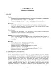 EXPERIMENT #6 Electron Diffraction GOALS Physics Demonstrate that accelerated electrons have an effective wavelength, , by diffracting them from parallel planes of atoms in a carbon film. Measure the spacings between two sets of parallel planes of atoms in carbon. Techniques Control the wavelength of the electron beam by varying the accelerating voltage. Use the De Broglie expression for the wavelength of the electrons and the Bragg condition for analyzing the diffraction pattern. Error Analysis Calculating the uncertainties in the data points on your graph gives you a good opportunity to use the principles of error propagation. Question (work out in lab book before class) 1. Derive an expression for the extrapolated value of the diffraction ring of diameter D' shown in Fig. 11. HINT: start with the fact that D is the chord of a circle with a 66 mm radius. References Serway, Moses, Moyer, Modern Physics, 2nd Edition ISBN # 0-03-004844-3, pages 110-118 Giancolli, Physics for Scientists and Engineers, 2nd Edition ISBN # 0-13-666322-2, pages 875-876 Halliday and Resnick and Walker; Fundamentals of Physics, 1st Edition ISBN # 0-471-10558-9, page 942-945 BACKGROUND AND THEORY Several of your laboratory experiments show that light can exhibit the properties of either waves or particles. The wave nature is evident in the diffraction of light by a ruled grating and in the interferometer experiments. In these experiments, wavelength, phase angle, and coherence length of wave trains were investigated--all features of wave phenomena. However, the photoelectric effect requires a model in which light consists of discrete bundles or quanta of energy called photons. These photons behave like particles. There are other examples illustrating this dual nature of light. Generally, those experiments involving propagation of radiation, e.g. interference or diffraction, are best described by waves. Those 6-1 phenomena concerned with the interaction of radiation with matter, such as absorption or scattering, are more readily explained by a particle model. Some connection between the wave and particle models can be derived by using the principal of the equivalence of mass and energy introduced by Einstein in 1905 in his special theory of relativity, namely, E= mc2 . In this equation E is the total energy of a body, m is its mass, and c is the velocity of light. From the photoelectric experiment we learned that light may be considered to consist of particles called photons whose energy is E = hf where f is the frequency of light and h is Planck's constant. We may equate these two energies and obtain: mc2 = hf, or mc = hf/c = h/ where is the wavelength of the light. Now mc is the momentum of a photon with equivalent mass m traveling with velocity c. Thus the momentum of radiation may be expressed either in terms of the wave characteristic or by the mass and velocity of the equivalent particle. This dual situation with respect to radiation led de Broglie in 1925 to suggest that a similar duality should exist for those entities which had previously been regarded as particles. Thus, a particle such as an electron with mass m, traveling with velocity v, has a momentum mv. De Broglie stated that this particle could also behave as a wave and its momentum should equal the wave momentum, i.e. mv = h/r h/mv . It was then a question of verifying this hypothesis experimentally. If an electron is accelerated through a potential difference V, it gains a kinetic energy 1 mv 2 eV , or 2 mv 2emV where e is the electron charge and m is its mass. Substituting this value for v in the de Broglie expression for the wavelength gives 6-2 h mv 1 / 2 h V 9 (1.23 10 m) 2meV 1 volt (1) Thus it should be fairly simple to produce a beam of electrons of a known wavelength by accelerating them in a voltage V. This beam could then be used in experiments designed to demonstrate wave properties, e.g. interference or diffraction. One might try to diffract the beam of electrons from a grating. However, the spacings between the rulings in man-made gratings are of the order of several hundred nm. From Equ. (1), we find that even with an accelerating voltage as low as 1. V, the electron wavelength is only 1.2 nm. As we will see shortly, such a large difference between the grating spacing and the electron wavelength would result in an immeasurably small diffraction angle. It was recognized, however, that the spacings between atoms in a crystal were of the order of a few tenths of a nm (1 Angstrom = 0.1 nm). Thus, it might be feasible to use the parallel rows of atoms in a crystal as the "diffraction grating" for an electron beam. This possibility seemed particularly promising since it had been found that x-rays could be diffracted by crystals, and x-ray wavelengths are similar to the wavelengths of 100 eV electrons. Figure 1 shows some of the possible arrangements of atoms in a cubic pattern. (a) is the simple cubic form. When an atom is placed in the center of the simple cube, we get (b), the body-centered-cubic form. Figure 1: Three cubic arrangements of atoms in a crystal. (a) simple cubic, (b) body centered-cubic, (c) face-centered cubic When atoms are placed on the faces of the cube, as in (c), the arrangement is called facecentered-cubic. For example, the atoms in nickel and sodium chloride are arranged in the face-centered-cubic pattern. In an iron crystal, the body-centered-cubic arrangement is found. Figure 2 shows a view of body-centered-cubic atoms looking perpendicular to one of the cubic faces. Three different orientations of parallel rows of atoms are distinguished with different spacings between the parallel rows. These parallel rows of atoms lie in parallel 6-3 atomic planes, and it is evident that there are a large number of families of parallel planes of atoms in a crystal. Figure 2: Interplanar spacings, d, of different families of parallel planes in a cubic array of atoms. Figure 3: Scattering of waves from a plane of atoms. Path di