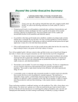 Beyond the Limits-Executive Summary Confronting Global Collapse, Envisioning a Sustainable Future by Donella H. Meadows, Dennis L. Meadows, and Jorgen Randers Twenty years ago, after working with global data and with a computer model called World3, we came to the following conclusions in a book called The Limits to Growth: 1. If present growth trends in world population, industrialization, pollution, food production, and resource depletion continue unchanged, the limits to growth on this planet will be reached sometime within the next hundred years. The most probable result will be a sudden and uncontrollable decline in both population and industrial capacity. 2. It is possible to alter these growth trends and to establish a condition of ecological and economic stability that is sustainable far into the future. The state of global equilibrium could be designed so that the basic material needs of each person on earth are satisfied and each person has an equal opportunity to realize his or her individual human potential. 3. If the world's people decide to strive for this second outcome rather than the first, the sooner they begin working to attain it, the greater will be their chances of success. Now with an updated model, with more extensive data, and after twenty years of growth and change in the world, we believe that our original conclusions are still valid, but they need to be strengthened: 1. Human use of many essential resources and generation of many kinds of pollutants have already surpassed rates that are physically sustainable. Without significant reductions in material and energy flows, there will be in the coming decades an uncontrolled decline in per capita food output, energy use, and industrial production. 2. This decline is not inevitable. To avoid it two changes are necessary. The first is a comprehensive revision of policies and practices that perpetuate growth in material consumption and in population. The second is a rapid, drastic increase in the efficiency with which materials and energy are used. 3. A sustainable society is technically and economically possible. It could be much more desirable than a society that tries to solve its problems by constant expansion. The transition to a sustainable society requires a careful balance between long-term and short-term goals and an emphasis on sufficiency, equity, and quality of life rather than on quantity of output. It requires more than productivity and more than technology; it also requires maturity, compassion, and wisdom. These conclusions constitute a conditional warning, not a dire prediction. They offer a living choice, not a death sentence. The choice isn't a gloomy one. It does not mean that the poor must be frozen in their poverty or that the rich must become poor. It could mean the solution of problems such as poverty and unemployment that humanity has been working at inefficiently or fruitlessly by trying to maintain physical growth. We hope that the world will make the choice for sustainability. We think that a better world is possible and that the acceptance of physical limits is the first step toward getting there. We see "easing down" not as a sacrifice, but as an opportunity to stop battering against the earth's limits and to start transcending self-imposed and unnecessary limits within human institutions, minds, and hearts. Overshoot The following are characteristics of a society that has grown beyond its limits—a society that is drawing upon the earth's resources faster than they can be restored, and that is releasing wastes and pollutants faster than the earth can absorb them or render them harmless. o Falling stocks of groundwaters, forests, fish, soils. o Rising accumulations of wastes and pollutants. o Capital, energy, materials, and labor devoted to exploitation of more distant, deeper, or more dilute resources. o Capital, energy, materials, and labor compensating for what were once free natural services (sewage treatment, flood control, air purification, pest control, restoring soil nutrients, preserving species). o Capital, energy, materials, and labor diverted to defend or gain access to resources that are concentrated in a few remaining places (such as oil in the Middle East). o Deterioration in physical capital, especially in long-lived infrastructure. o Reduced investment in human resources (education, health care, shelter) in order to meet consumption needs or to pay debts. o Increasing conflict over resources or pollution emission rights. Less social solidarity, more hoarding, greater gaps between haves and have-nots. A society like this is in a state of overshoot. To overshoot means to go too far, to grow so large so quickly that limits are exceeded. When an overshoot occurs, it induces stresses—in this case in both natural and social processes—that begin to work to slow and stop growth. If humanity does not correct its condition of overshoot, problems like the ones listed above will worsen, until human productive capacity, ingenuity, adaptability, and attention are overwhelmed. At that point overshoot will turn into collapse. However, collapse is not the only possible outcome. The human society can ease down from beyond the limits. That need not mean reducing population or capital or living standards, though it certainly means reducing their growth. What must go down, and quickly, are throughputs—flows of material and energy from the supporting environ-ment, through the economy, and back to the environment. Fortunately, in a perverse way, the current global economy is so wasteful, inefficient, and inequitable that it has tremendous potential for reducing throughputs while raising the quality of life for everyone. While that is happening, other measures—nontechnical measures, evolutionary human measures—can restructure the social system, so that overshoot never happens again. Looking into the Future with World3 To understand how the human economy and the environment may unfold 